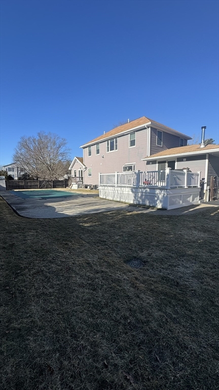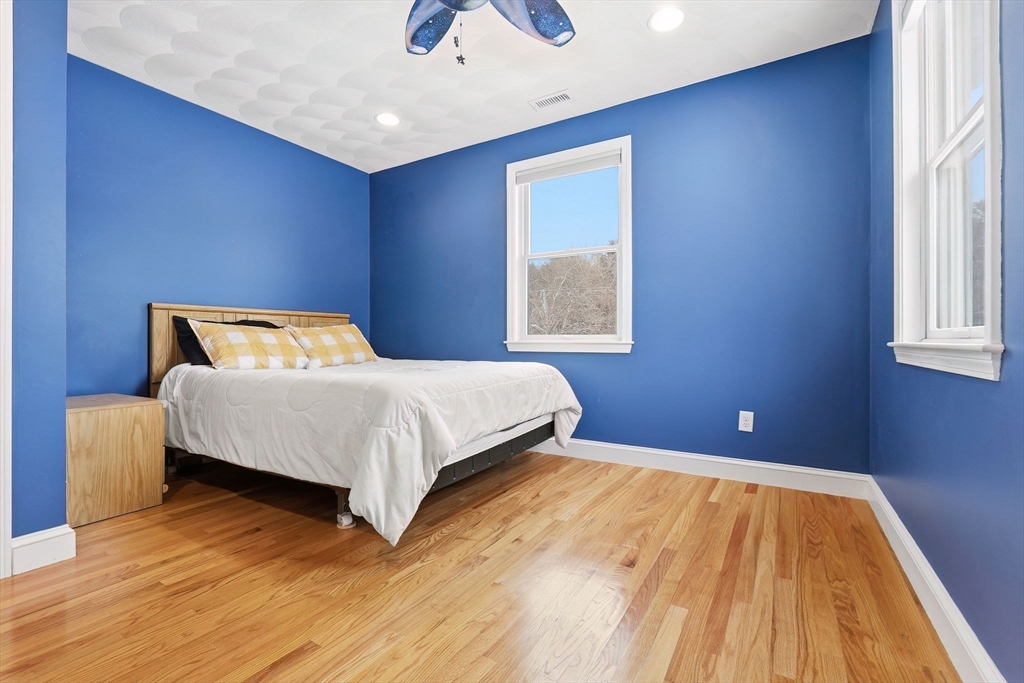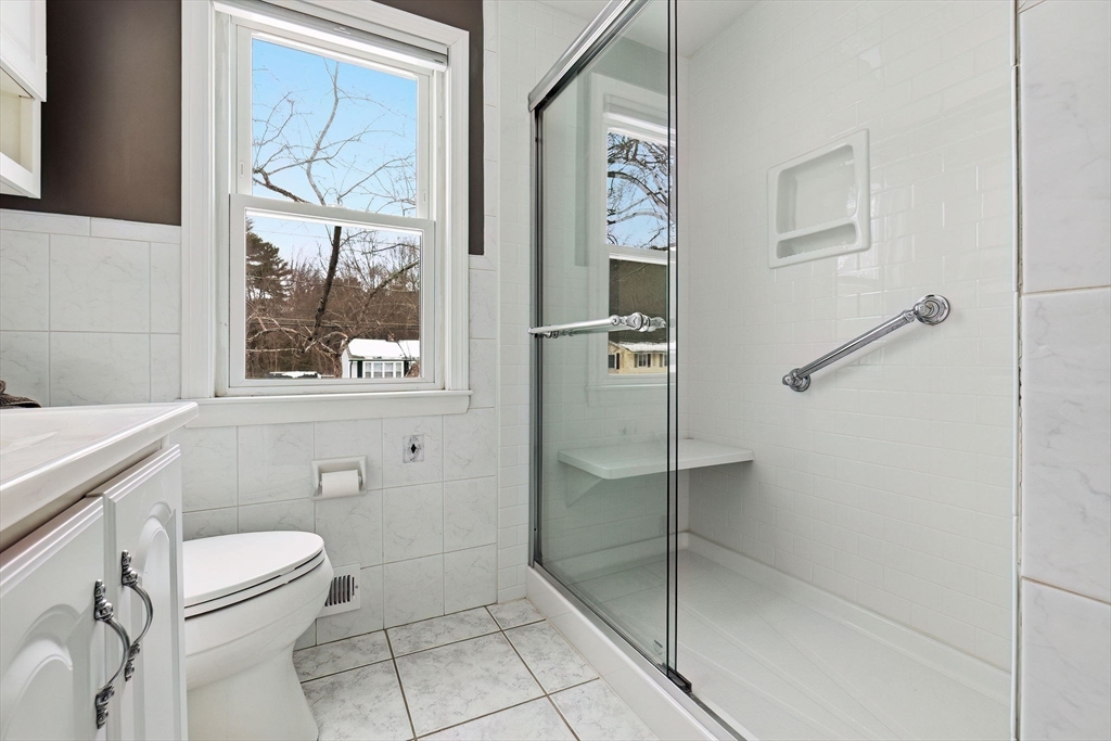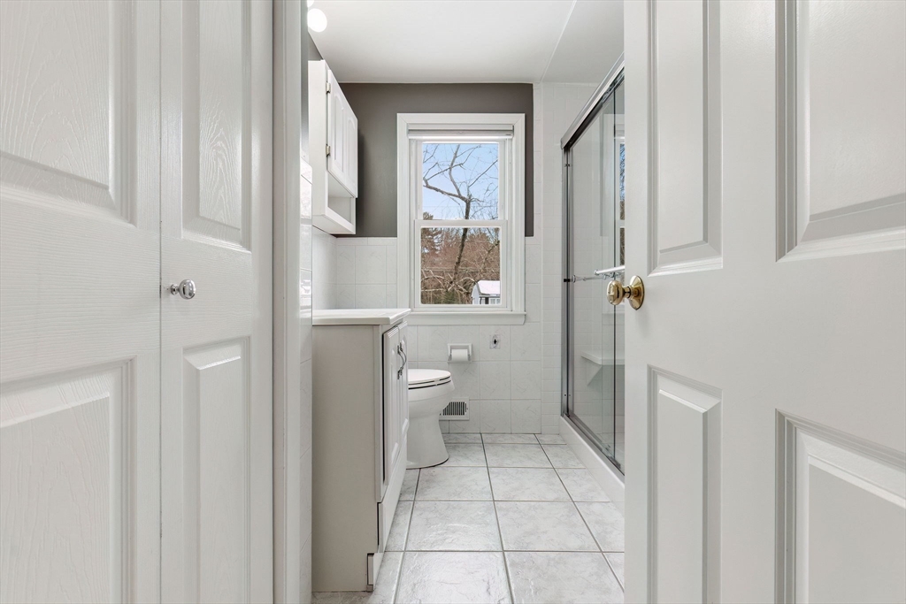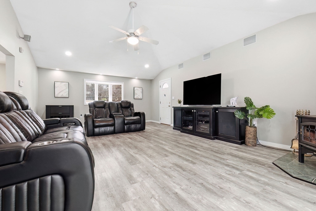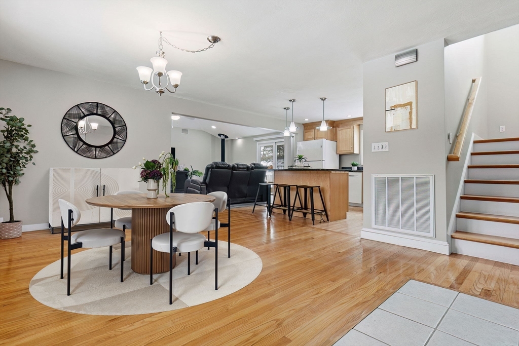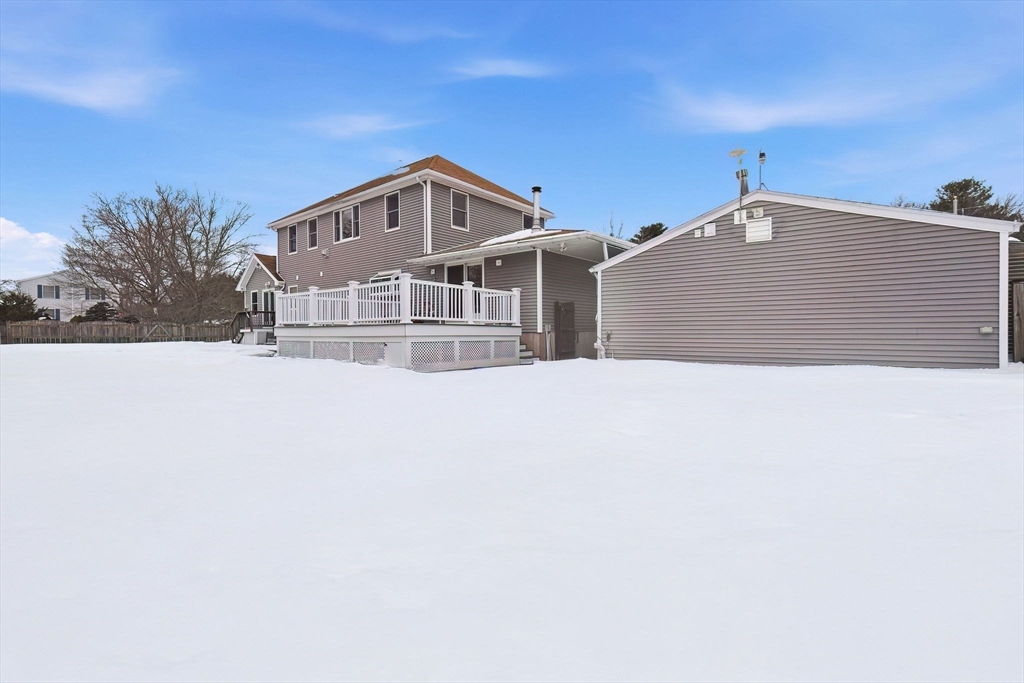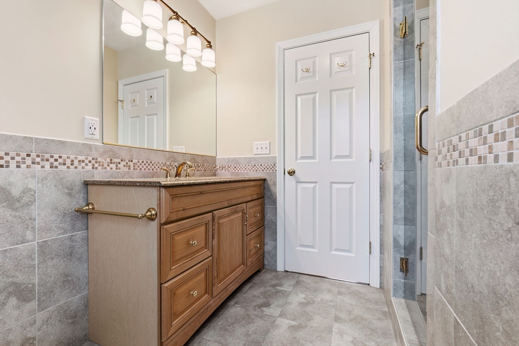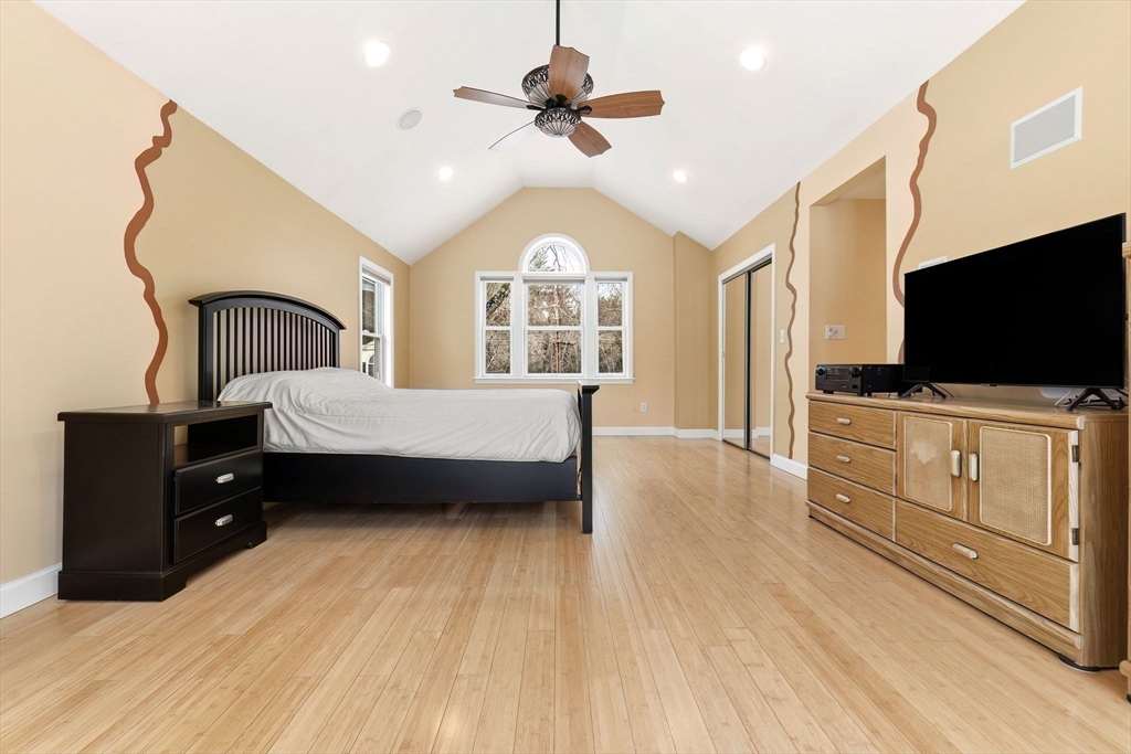 Welcome to this meticulously maintained Colonial located on a quiet street in desirable West Peabody. Step inside to a sun-drenched open concept great room featuring cathedral ceilings, abundant natural light, and a cozy wood-burning fireplace. The kitchen shines with granite countertops, a large center island, and ample space to entertain. This home offers two beautifully appointed primary suites. The first-floor primary bedroom features cathedral ceilings, a gas fireplace, a private en-suite bath, and direct access to the pool area. The second-floor primary suite offers gas fireplace, an expansive walk-in closet, and a fully renovated en-suite bath. The spacious finished basement with a wet bar creates the ultimate bonus space, perfect for entertaining or game nights. Step outside to this backyard retreat featuring an in-ground pool perfect for entertaining. A detached heated two-car garage and oversized driveway provide plenty of parking, storage, and year-round convenience.