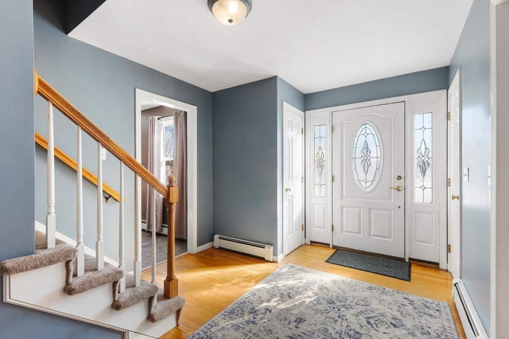 Welcome to 1 Maura Elizabeth Ln. This beautiful 4-bedroom,2.5 bath Colonial located on a quiet cul-de-sac in one of Foxborough’s most desirable neighborhoods.Set on nearly an acre of land this home offers exceptional space and curb appeal.The main level features a bright, open spacious kitchen layout with ample cabinetry, dining area, living room, cozy family room with fire place, half bath with washer/dryer.The 2nd floor features primary suite with, full bath, walk-in closet, plus 3 generously sized bedrooms and full bath.The finished basement provides versatile bonus space ideal for a family room, home office, gym, or playroom.Enjoy the expansive backyard with large deck, above ground pool,with plenty of room for outdoor gatherings and more. 2 car garage. This charming Colonial is conveniently located near major routes, shopping, dining, schools and commuter rail access offering the perfect balance of suburban tranquility and everyday convenience.