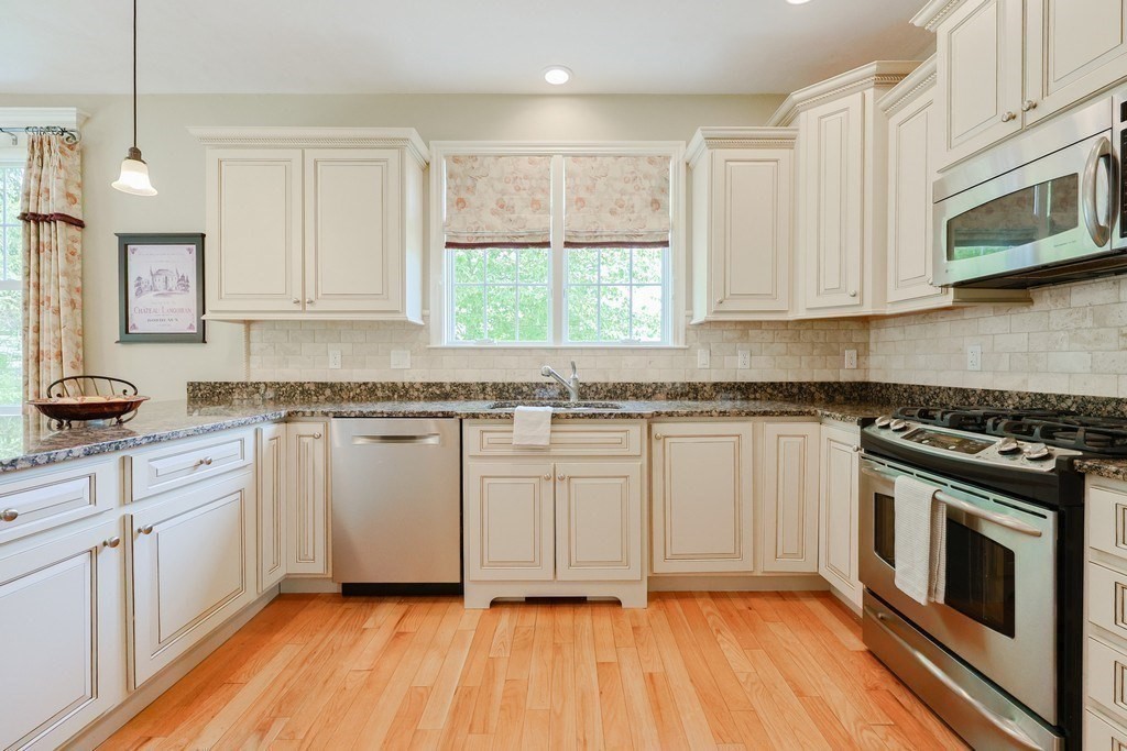 Adams Farm is a highly desirable 55+ Adult Community. Impeccably maintained Lincoln model townhome is available for the first time. Home is loaded w/ upgrades. Backyard is WOW - a unique & spectacular one of a kind private sanctuary. Large double size patio, flanked by professional plantings, privacy trees & rolling hills, provides a relaxing & tranquil retreat you will not want to leave. Interior has gleaming hardwoods & softened paint colors. Beautiful gourmet kitchen boasts off-white cabinetry, SS appliances, granite & eat-in nook w/ sliders overlooking lush grounds & opens to vaulted living room w/ stunning millwork & built-ins. Dining room has wall of windows & more attractive molding. Grand 1st floor primary suite has half vaulted ceiling, walk-in & luxurious bath. 2nd level is replete w/ loft & built-ins, 2nd bedroom suite, large bonus room w/ built-ins & additional finished large walk-in closet & "flex" room. Clubhouse hosts a variety of events. Close to shopping & highways.