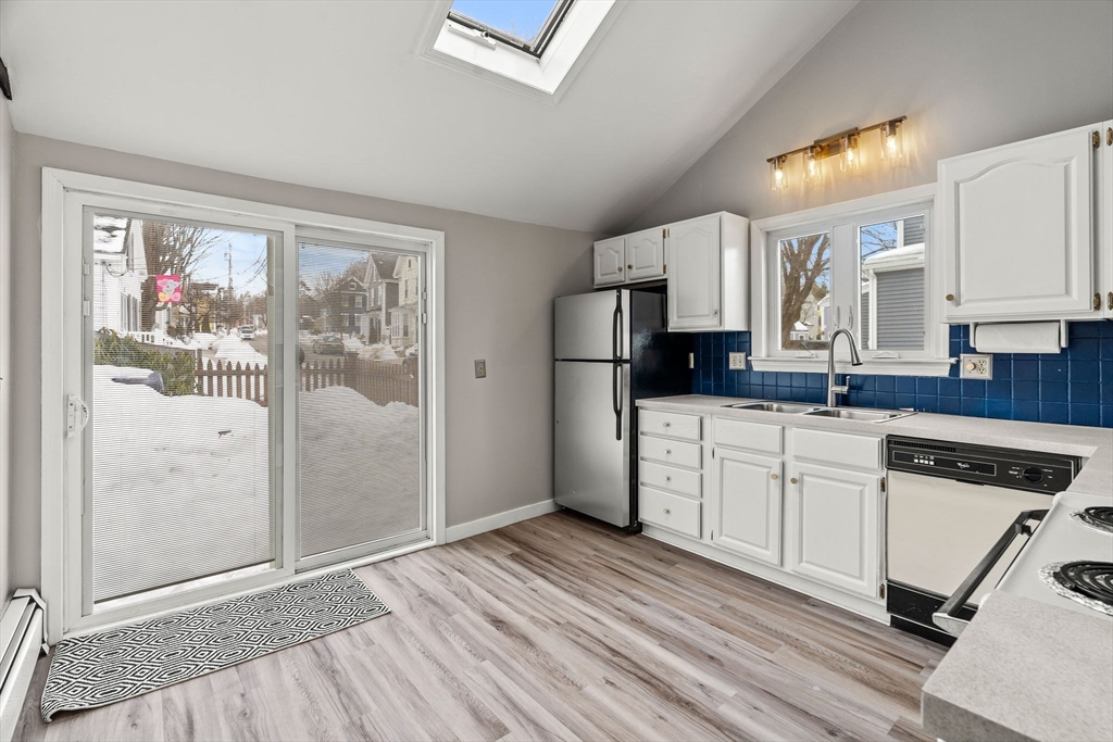 Enjoy peaceful river views from this lovely, move-in ready 2-bedroom condo with a bright, functional layout and cozy working fireplace—perfect for relaxing evenings at home. The kitchen shines with natural light from a stunning skylight and features a dramatic cathedral ceiling and elegant chandelier, creating an airy space for cooking and gathering. Step outside to your private, fenced-in brick patio—ideal for morning coffee or unwinding outdoors. An in-unit washer and dryer add everyday convenience. Recent updates include a new roof and new windows, plus off-street assigned parking. Conveniently located within walking distance to downtown Newburyport, you’ll enjoy easy access to shops, dining, walking trails, and the waterfront. With scenic views and thoughtful upgrades throughout, this charming condo is ready to move right in and enjoy!
