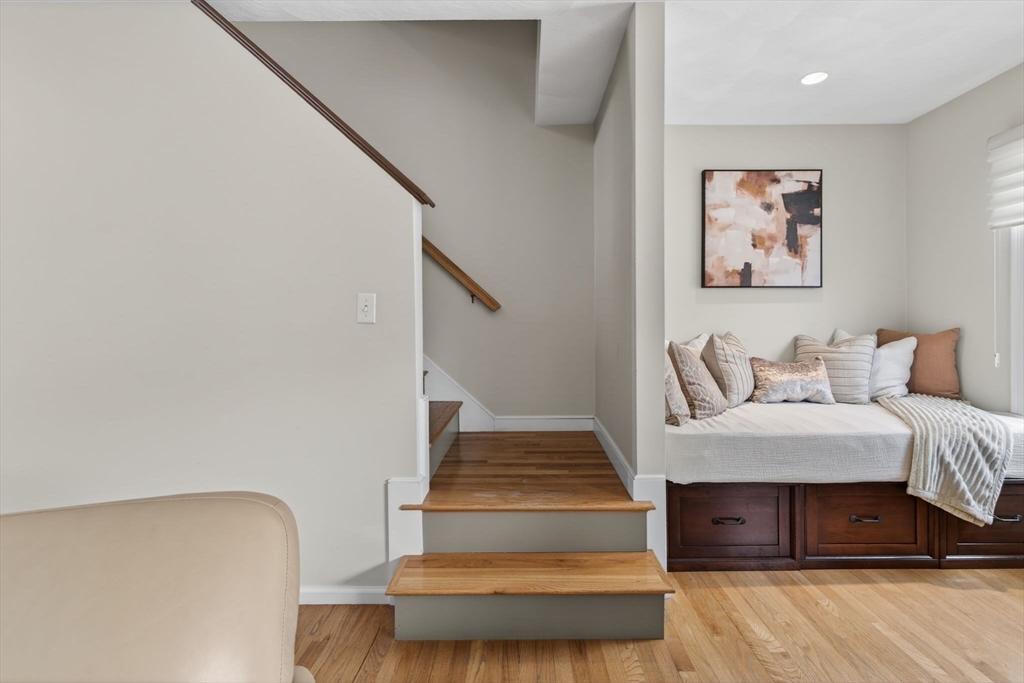 SHOWSTOPPER ALERT! Welcome to Unit 11 at 555 Main. A luxurious 2 Bedroom/2.5 Bath Woburn townhome that truly has it all. Prepare to be wowed in the kitchen by custom soft-close cabinetry, rich earth-tone granite counters, high-end JennAir appliances & warm ambient lighting. Gleaming hardwood floors & oversized windows flood the space with natural light. The primary suite is a true retreat boasting two oversized closets & a private ensuite bath. The spectacular loft steals the show with beamed vaulted ceilings, pendant lighting, custom window seat, and built-ins offering incredible versatility perfect for whatever your heart desires. Enjoy the convenience of mini-splits for cooling, central vacuum, a 1-car garage, ample storage, a private outdoor deck and the peace of mind of a professionally managed, pet-friendly community! Perfectly located near 95/128 and Downtown, this home blends sophisticated style with ultimate convenience. Don’t miss out - it's the one you’ve been waiting for!