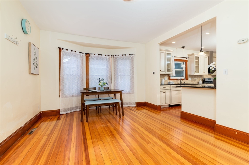 Charming single-family home short distance to North Quincy T and Wollaston Beach. Features include an all-season enclosed porch, hardwood floors throughout, and an open living room/kitchen layout leading to a spacious mahogany deck and fully fenced backyard. The first floor offers two bedrooms with walk-in closets and an updated bath. Second-floor bedrooms are cozy yet functional, comfortably fitting twin to full-size beds, plus additional storage space. A partially finished basement provides bonus area. Close to Quincy restaurants, Marina Bay, major highways, and minutes to Boston. Great location and flexible living space!