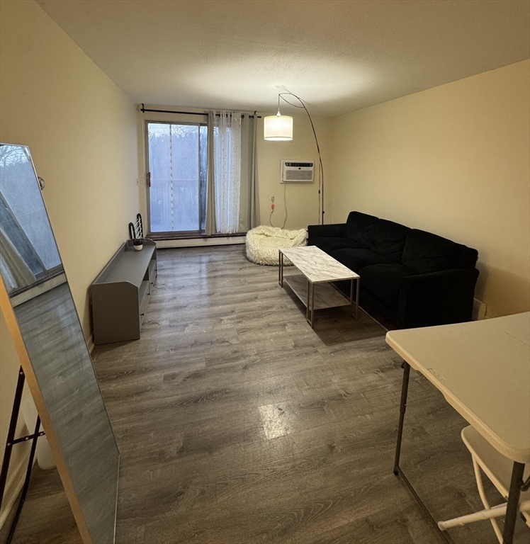 Beautifully updated 2-bedroom, 1-bath condo offering peaceful surroundings and modern comfort. Features include an updated bath, newer laminate flooring, a modern kitchen with a newer oven, in-unit laundry, custom closet shelving, and a spacious private deck. In-wall A/C plus two portable units provide year-round comfort.One assigned parking space included. Rent covers heat, hot water, and gas. Professionally managed community with landscaped grounds and an in-ground pool. Conveniently located near Boston College, shops, dining, schools, and major transit routes. Video tour available.