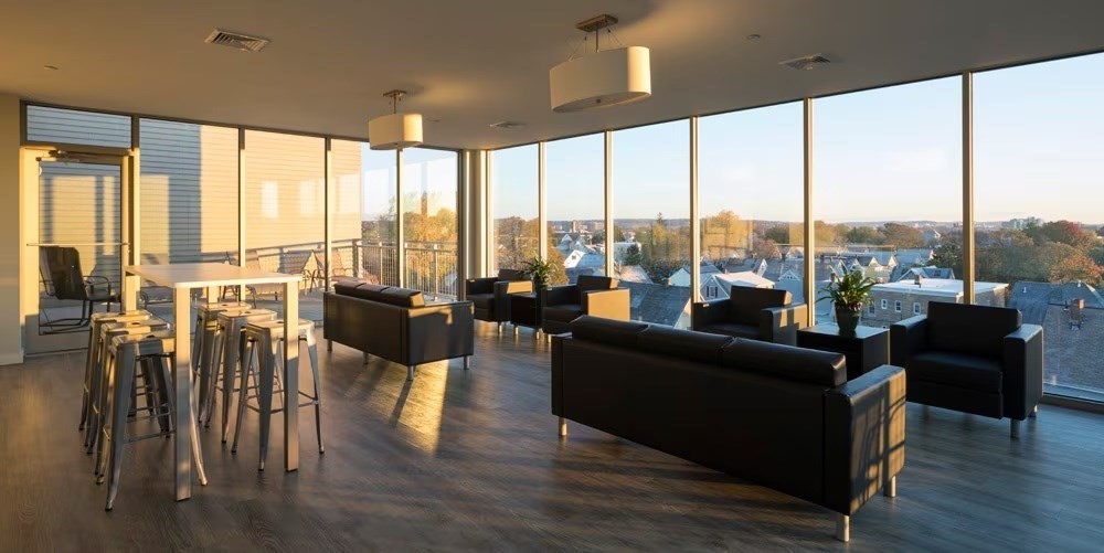 Available now. Luxury, upscale two-bedroom, two-bathroom apartment in Medford on the Somerville line, offering spacious living with high-end finishes throughout. This stunning unit features an open kitchen with a large island, custom cabinetry, top-of-the-line appliances, quartz countertops, recessed lighting, ceramic tile bathrooms, high ceilings, walk-in closets, and oversized energy-efficient acoustical windows with sweeping views. An in-unit washer and dryer are included. Residents enjoy premium amenities such as a state-of-the-art fitness center, bike storage and repair room, and a rooftop city lounge with two expansive decks. Prime location on Boston Avenue, just steps from Tufts University and Ball Square, with easy access to bus stops and the Orange, Red, and Green Lines. Optional parking is available: uncovered spaces for $75/month and covered spaces for $150/month.
