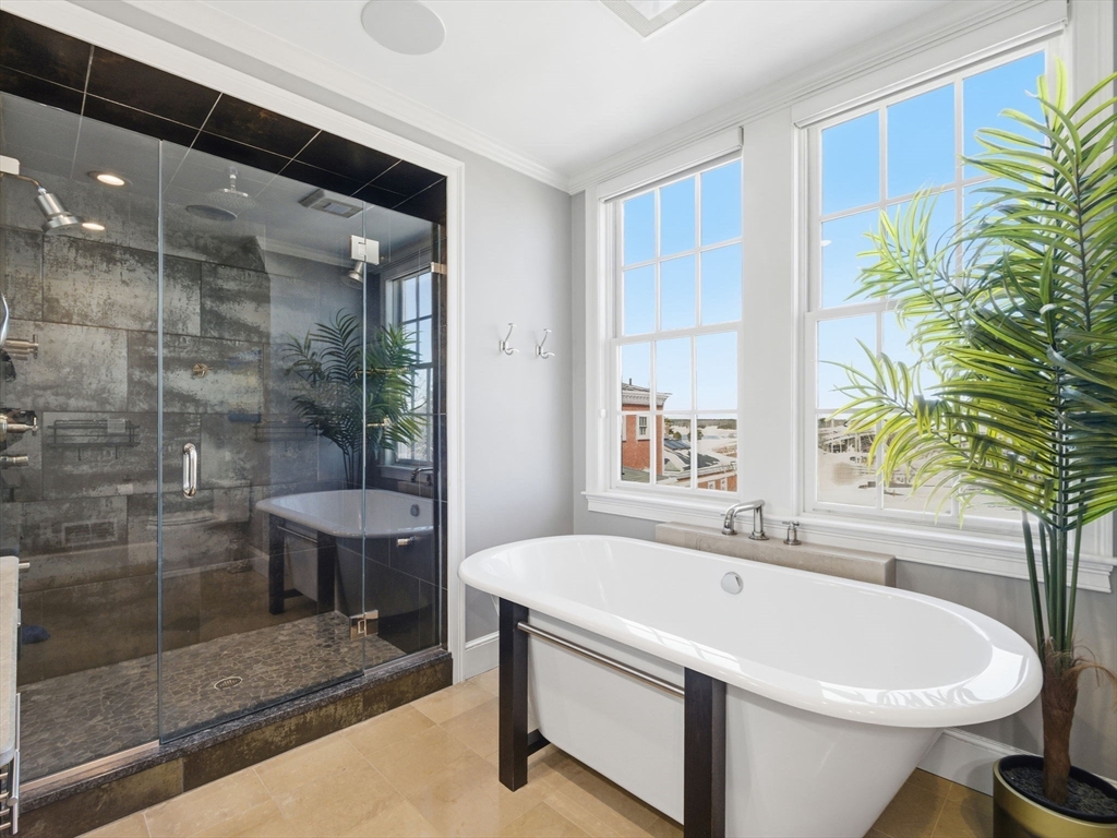 RARE OPPORTUNITY!! Welcome to this incredibly rare stand alone condo with no HOA fee situated right in downtown Newburyport. This home is just a short walk away from all that Newburyport has to offer and steps away from Michaels Harborside. This home even offers a 2 car garage and a roof deck with a view of the yacht club and river! On the first level you will find a private suite with its own exterior access and a gorgeous newly renovated bathroom. On the main level you will find an open concept living area, kitchen with a SUB ZERO fridge and WOLF oven, a bedroom, and a beautifully tiled full bathroom. On the third level is the generously sized master bedroom, a huge master bath with a soaking tub that looks over Newburyport, a large walk in closet, and a set of spiral stairs that take you up to the roof deck. With easy access to all major highways, walking trails, amenities, and views, you will not get another opportunity like this in Newburyport!