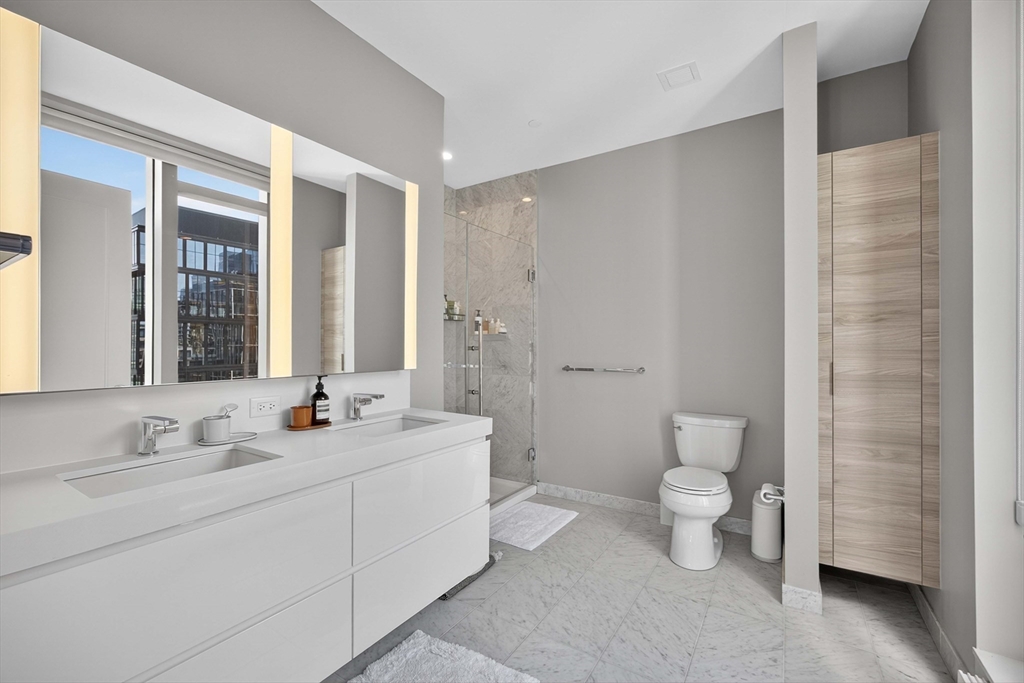 Panoramic harbor, city, and sunset views define this stunning 2 bed, 2.5 bath corner residence at Echelon Seaport. Floor-to-ceiling windows fill the home with natural light, highlighting one of the most desirable layouts in the building. The spacious living and dining areas flow into a sleek modern kitchen with fully integrated Thermador appliances. Both bedrooms are generously sized with en-suite baths, complemented by a stylish powder room for guests. Ample storage, superb proportions, and two valet parking spaces complete this exceptional home.Echelon Seaport offers a luxury lifestyle without equal in Boston, with 24/7 concierge, doorman, and onsite management, plus resort-style amenities: indoor and outdoor pools, state-of-the-art fitness center, basketball court, golf simulator, spa, wine room, innovation center, and a vibrant mix of restaurants and retail at street level.