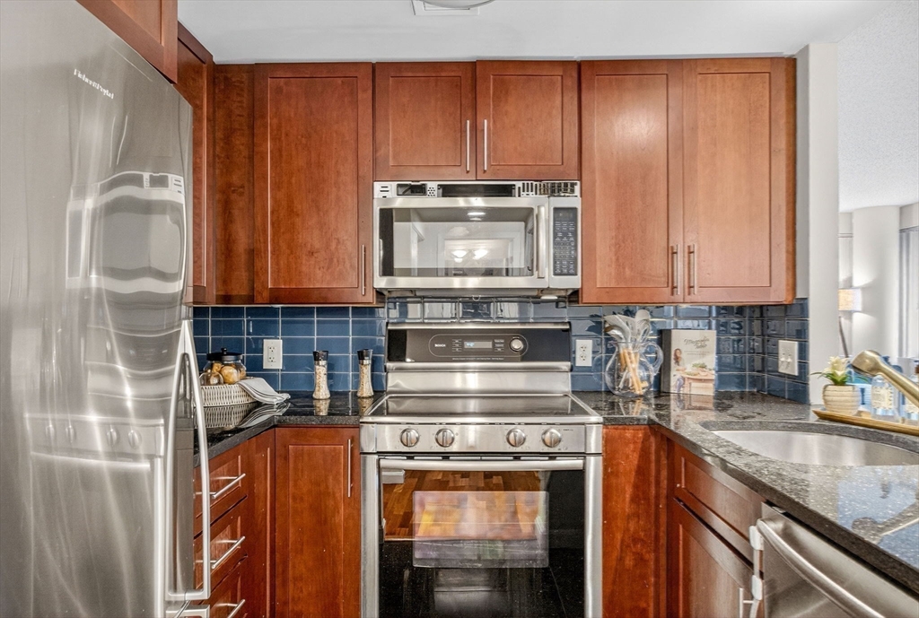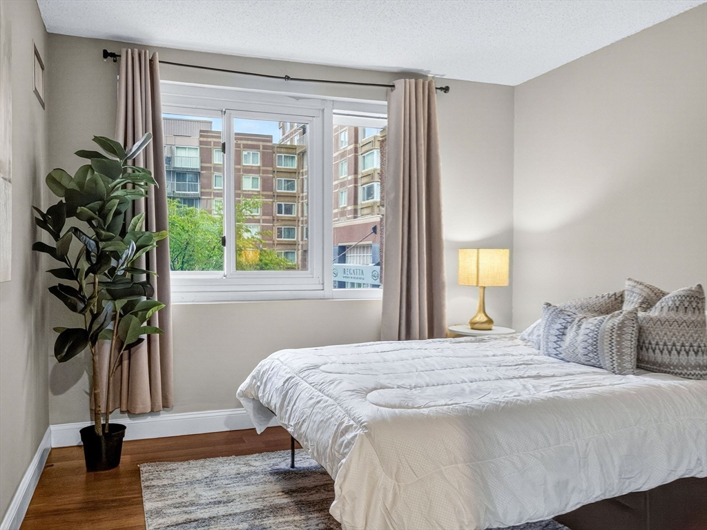 Don't miss the chance to be the proud owner of the desirable Regatta Riverview Condominiums. Great views from this south facing corner unit on the 2nd floor. Two bedrooms, two full bath (one en suite). Kitchen with cherry cabinets, stainless steel appliances and granite countertops. Hardwood floors throughout. In-unit laundry. Full service building with 24/7 concierge and valet parking. Best location - walking distance to Back Bay, MIT, shops and restaurants. Building amenities include full sized gym, lap pool and hot tub, business center, movie screening room, party room, laundry and dry cleaning pick up, and on site market. The building is pet friendly.