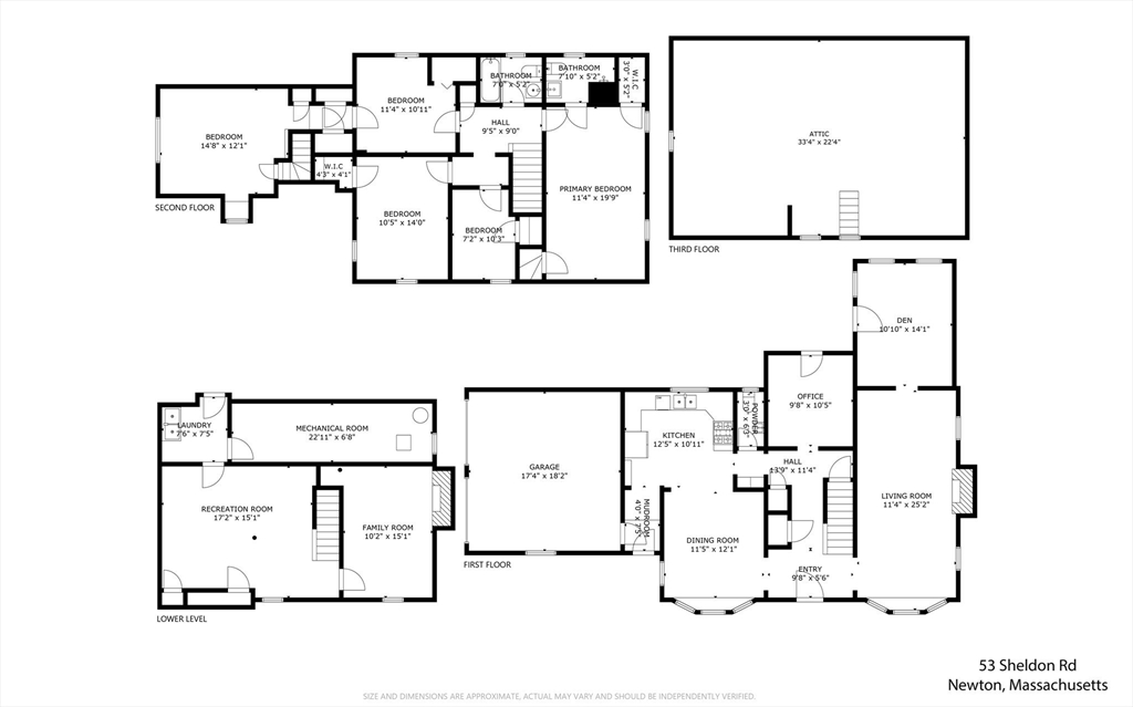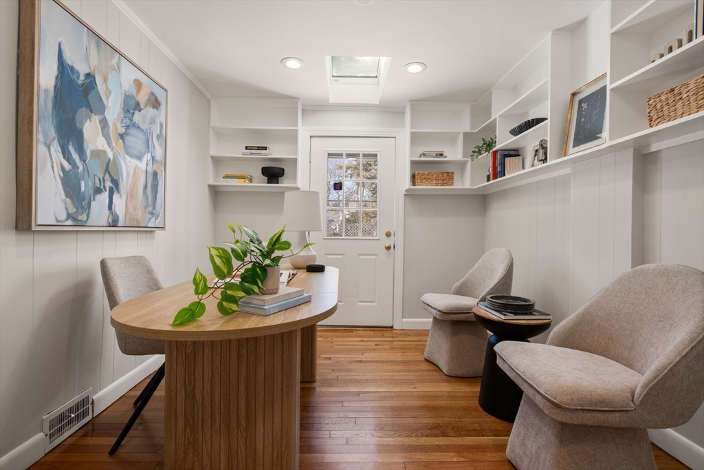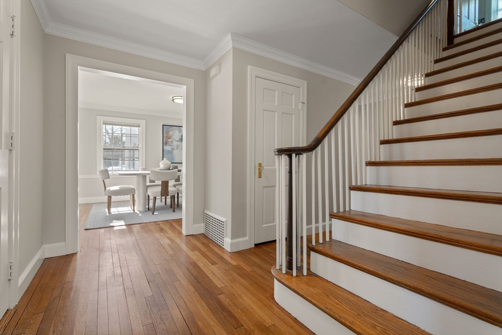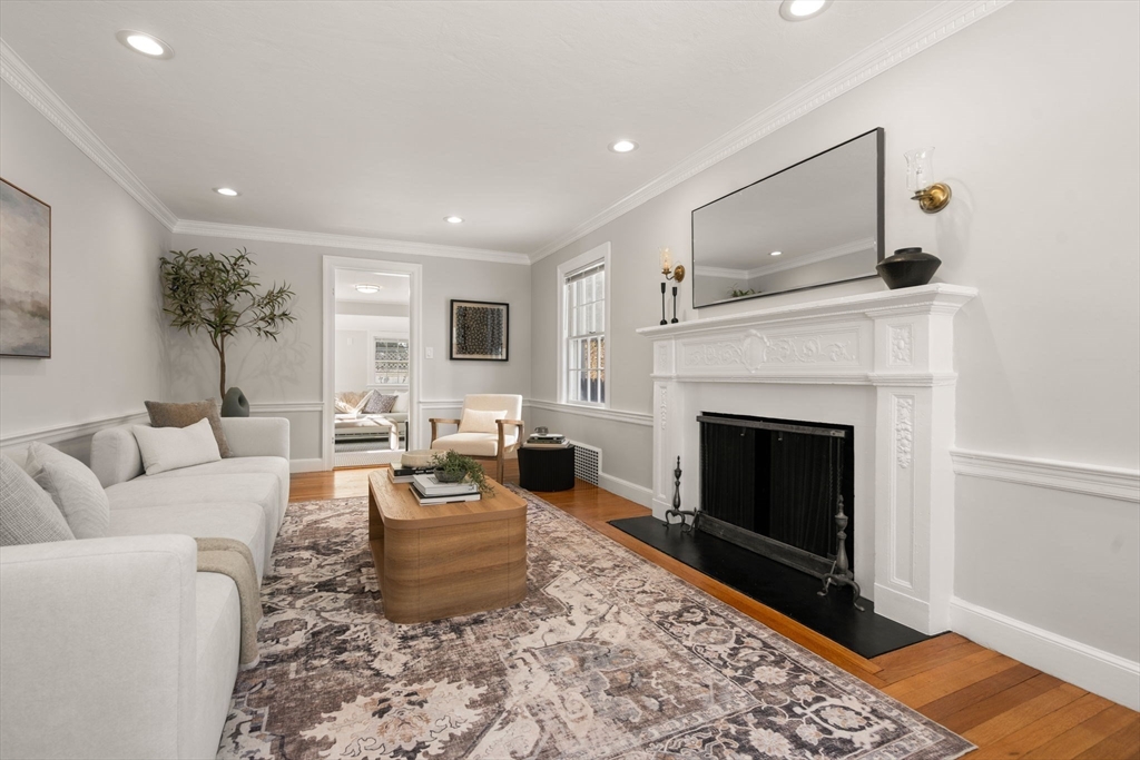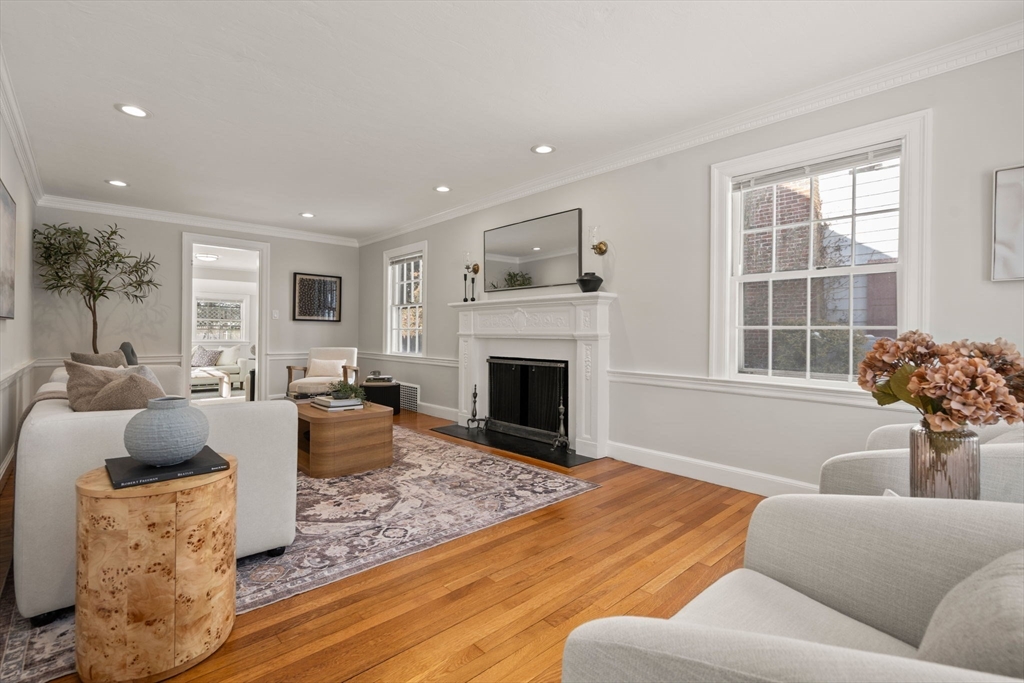 Newton Centre! Experience the perfect blend of classic charm and modern convenience in this outstanding 10-room Garrison Colonial with a beautiful, level, fenced-in backyard. This bright and airy home features tall ceilings, gleaming hardwood floors, and elegant bay windows in both the living and dining rooms. The stunning living room, complete with a fireplace, wood floors and recessed lighting, leads to a sun-filled den with direct backyard access. The main level also boasts an updated kitchen, inviting dining room, a mudroom, and a private office with a skylight & bookcases. A rare find, the second floor hosts all five bedrooms, including a primary suite w/ a walk-in closet & newer bath. Other features include a staircase to an unfinished attic, a two-car garage with direct entry adjacent to the kitchen, and a partially finished lower level with two rooms, plus a large area for storage. With its thoughtful layout, condition & prime location, place this home on the top of your list!