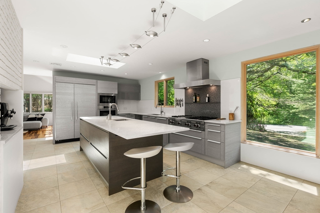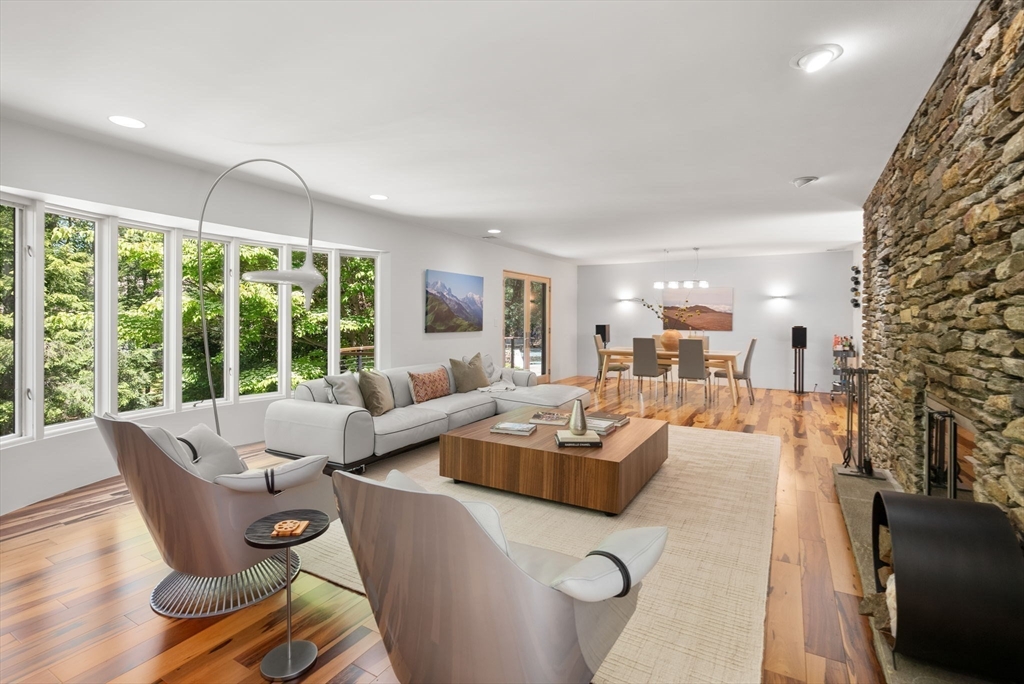Rarely available, this beautifully updated contemporary home is set on over 1.4 acres in one of Weston’s premier South Side neighborhoods. Bathed in natural light and offering exceptional privacy, the property is surrounded by mature landscaping, gardens, a pool, fieldstone walls, and inviting patios that create a peaceful setting. Thoughtfully renovated with quality finishes throughout, the interior spaces are ideal for both entertaining and comfortable everyday living. The kitchen features European cabinetry, a generous center island, and premium appliances, and opens seamlessly to spacious living, dining, and family rooms. The home offers five well-proportioned bedrooms, including a serene primary suite with views of the landscaped grounds, a spa-like bath, and a walk-in closet. A fabulous walkout lower level provides outstanding additional space for recreation, gatherings, or a home gym, adding versatility to this special property.