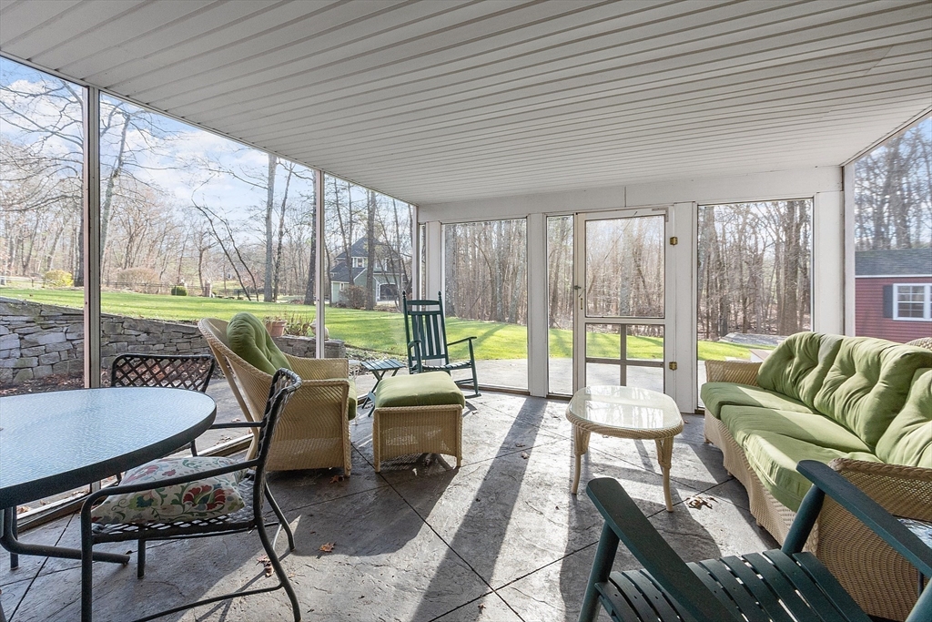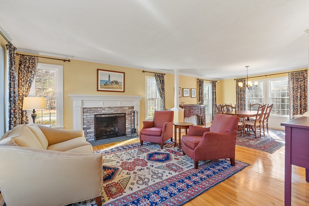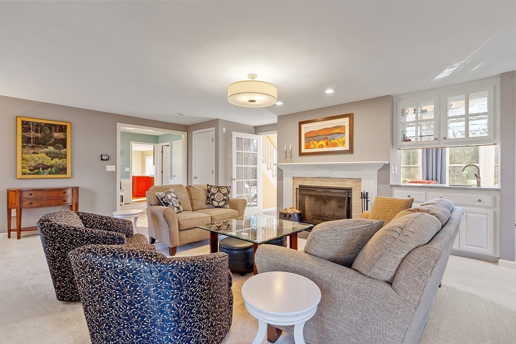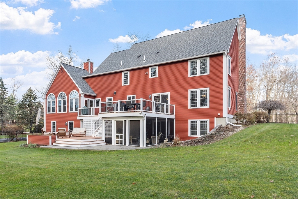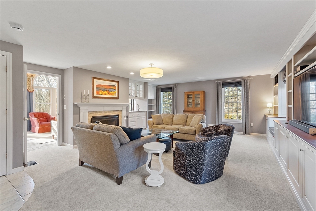 Welcome to this stunning home nestled in the serene, sought-after Groton Woods neighborhood. This spacious residence offers thoughtfully designed living space, blending comfort with timeless style crafted with intention. Meticulously maintained, the home presents a generous layout perfect for both everyday living and entertaining. The fireplaced living room is open to the dining room while the family room with fireplace, custom built-ins & window seats connects to the sunroom sharing a wet bar. The eat-in kitchen w/center island includes dual ovens, a warming drawer and an abundance of cabinet storage. A first floor office & half bath complete the 1st floor. The primary suite features a custom walk-in closet and updated primary bath. The 2nd floor includes 3 additional bedrooms, full bathroom and laundry room. The finished basement provides additional living space flexible for entertaining, office or exercise. Outdoors you will find an oversized deck, covered porch, shed & fenced yard.