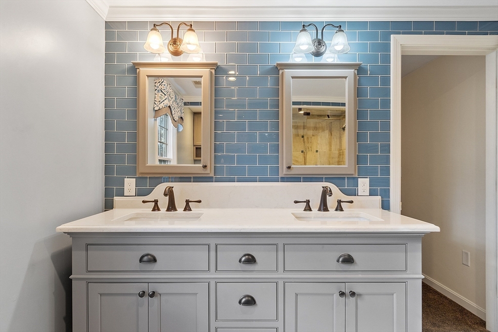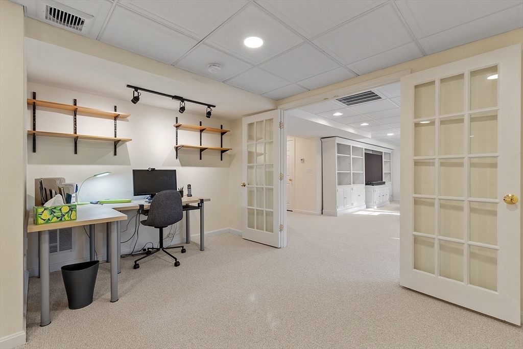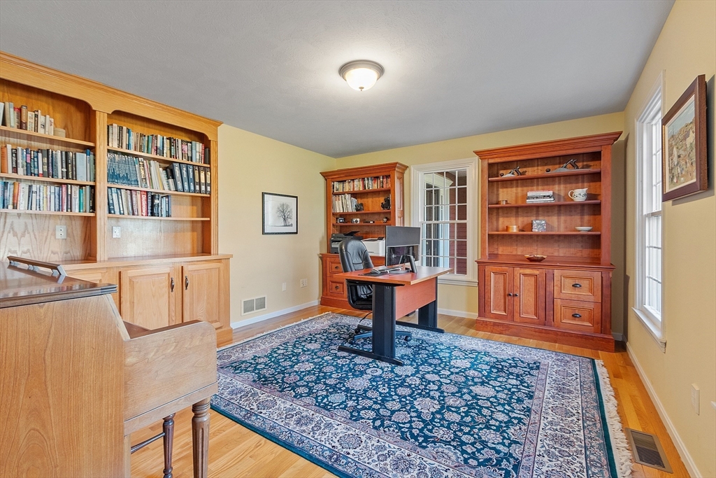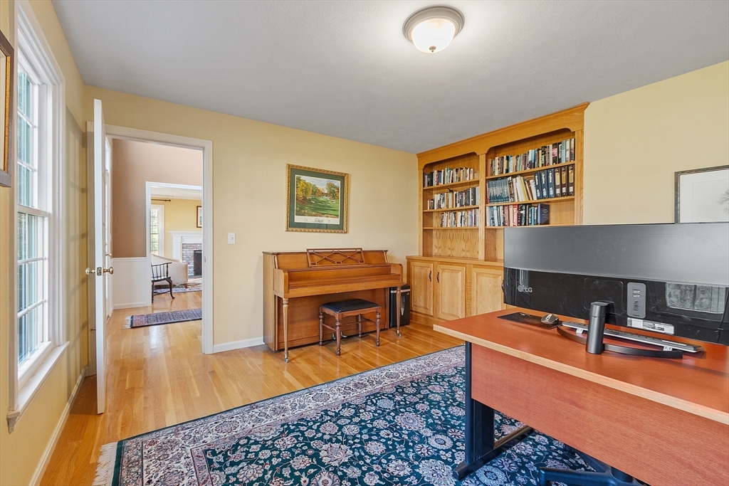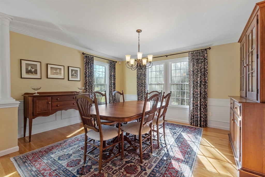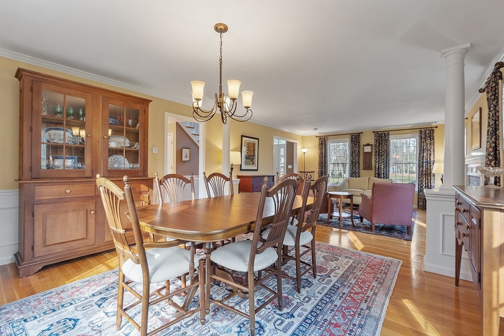 Welcome to this stunning home nestled in the serene, sought-after Groton Woods neighborhood. This spacious residence offers thoughtfully designed living space, blending comfort with timeless style crafted with intention. Meticulously maintained, the home presents a generous layout perfect for both everyday living and entertaining. The fireplaced living room is open to the dining room while the family room with fireplace, custom built-ins & window seats connects to the sunroom sharing a wet bar. The eat-in kitchen w/center island includes dual ovens, a warming drawer and an abundance of cabinet storage. A first floor office & half bath complete the 1st floor. The primary suite features a custom walk-in closet and updated primary bath. The 2nd floor includes 3 additional bedrooms, full bathroom and laundry room. The finished basement provides additional living space flexible for entertaining, office or exercise. Outdoors you will find an oversized deck, covered porch, shed & fenced yard.