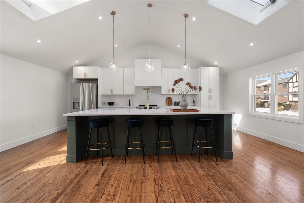 Open house Sat 11-1 & Sun 11-1 This exceptional, fully remodeled home offering modern luxury, comfort & plenty of space. The stunning property features gleaming hardwood floors, high-end designer fixtures and hardware, and a 10 ft kitchen island you won't forget! The inviting living room showcases a gorgeous fireplace & direct access to the deck, creating the perfect setting for relaxing or entertaining. The primary suite is a true retreat, highlighted by a striking accent wall, walk-in closet, and a luxurious double-sink vanity with upscale finishes. With five bedrooms, three full baths and finished basement for 2 separate living areas, this home offers flexible space for today’s lifestyle. Step outside to enjoy the deck and yard with concrete patio—ideal for outdoor gatherings, summer barbecues, and entertaining guests. Conveniently located near shops, restaurants, and parks, excellent commuter access to Route 24, Route 28, I-93, and the MBTA Commuter Rail for traveling to Boston!
