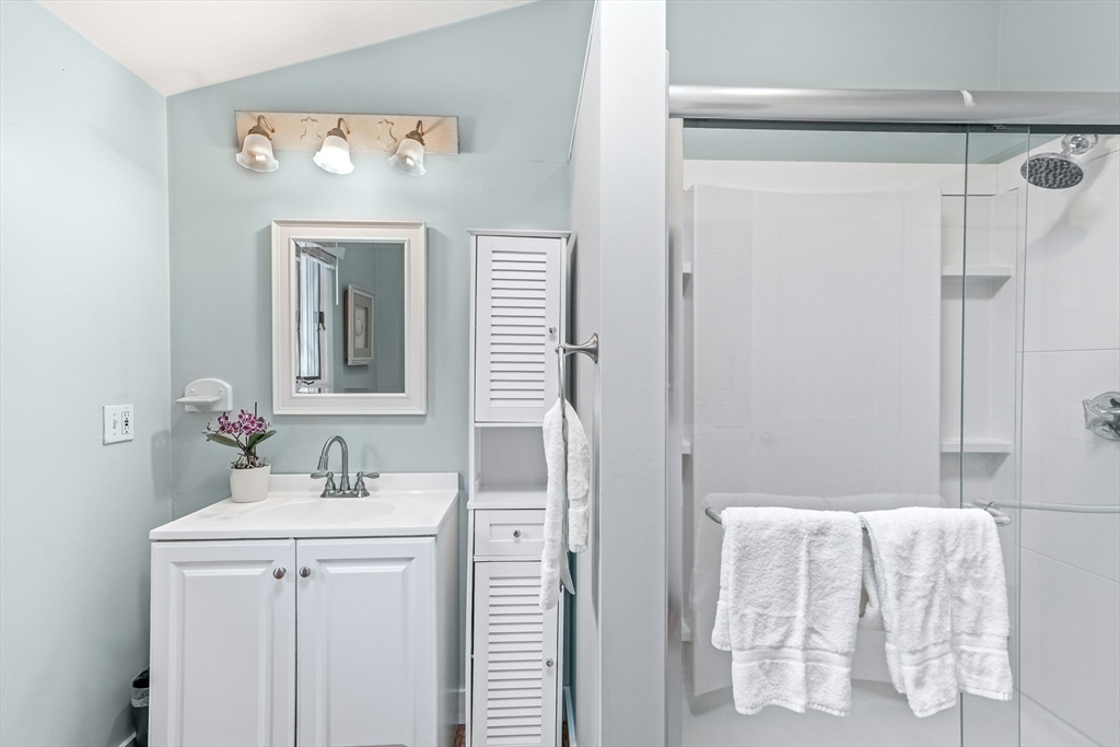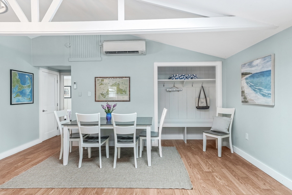Recently updated Oak Bluffs ranch-style home ideally located near Downtown and Oak Bluffs Harbor. Step inside to discover vaulted ceilings and an airy open floor plan that seamlessly connects the living room, dining area, and a spacious kitchen featuring granite countertops and updated appliances. The private primary suite is thoughtfully positioned off the main living area and offers a full bath with in-suite laundry, plus its own separate exterior entrance, perfect for added privacy or guest flexibility. Two additional guest bedrooms and a full hall bath complete the interior layout. Outdoor living is equally inviting, with a charming front deck featuring built-in bench seating, a stone patio for entertaining, and a convenient storage shed. Recent upgrades include a new roof, updated flooring, and energy-efficient mini-split systems for heating and cooling. Move-in ready and perfectly suited for enjoying the Vineyard lifestyle.