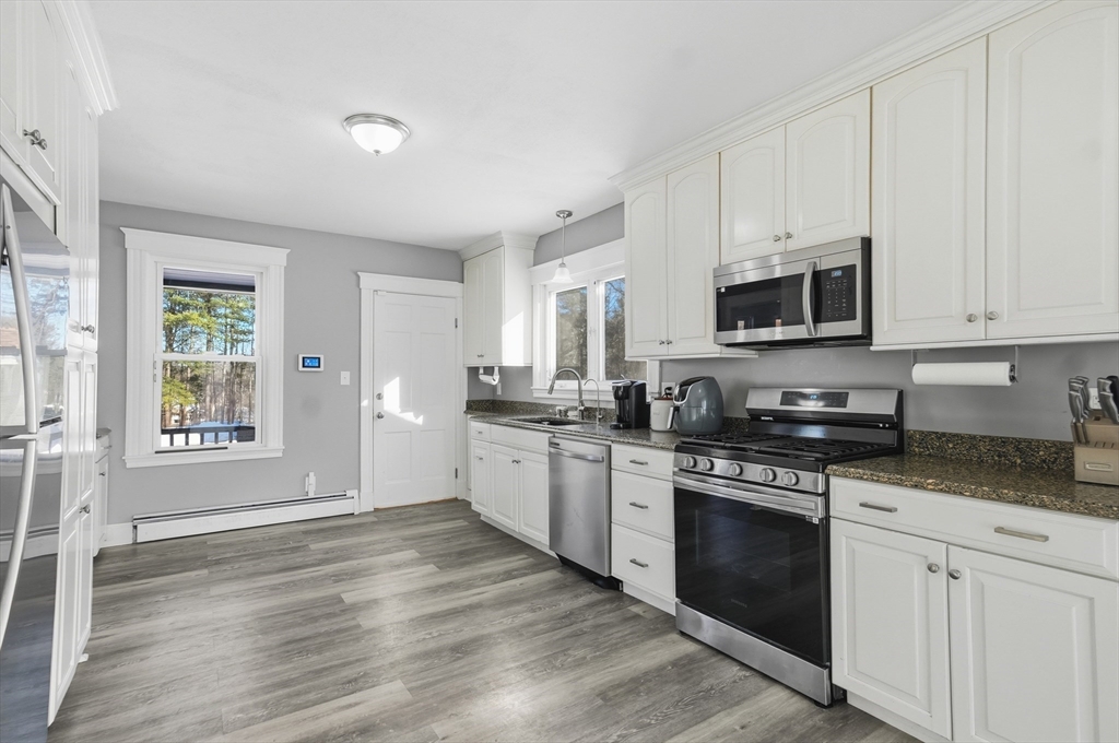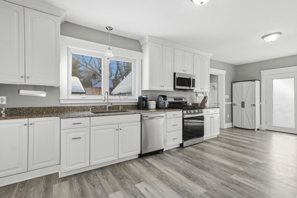 Welcome to this beautifully renovated home in the highly desirable East Methuen neighborhood! The charming front porch sets the tone for the warmth found throughout as the perfect place to relax w/ classic wainscoting & HW flrs. The spacious living rm offers beautiful HW flrs & flows seamlessly into the dining rm. The updated chef’s kitchen is a true highlight w/ granite countertops, SS appliances & a dining area w/ French doors that lead directly into the backyard. The main lvl also features a bonus room, updated baths, & convenient laundry hookups. Upstairs, you’ll find 3 bedrooms, each boasting HW flrs. The barn on the property presents exciting potential for an ADU, studio space, workshop, or future investments! Enjoy the large fenced-in yard w/ a storage shed, & detached garage. Additional updates include an Aqualite US Water Filtration System, a newer hot water tank (2025) & a recently installed fence. Minutes to major highways, shopping, restaurants, this home is a must see!