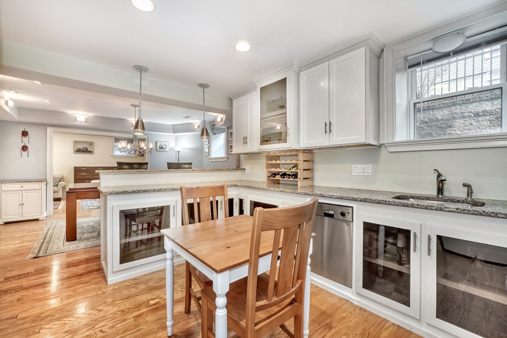 Step into this updated first-floor unit blending charm and modern convenience. Highlights include gleaming wood floors, a cozy living room, and a large dining room with a gas fireplace. The chef’s kitchen features granite counters and stainless steel appliances, while the home also boasts two spacious bedrooms, a sunroom, and 1.5 bathrooms. The finished lower level offers a game room, a lounge area with a gas fireplace, a Murphy bed, a secondary kitchen, and a full bath—all with walk-out access—an excellent opportunity for an in-law, au pair, or Airbnb. With two parking spaces and a prime location near Cabot Elementary, Newtonville Center, Whole Foods, the Mass Pike, and the Commuter Rail, this home offers comfort and convenience in Newtonville!