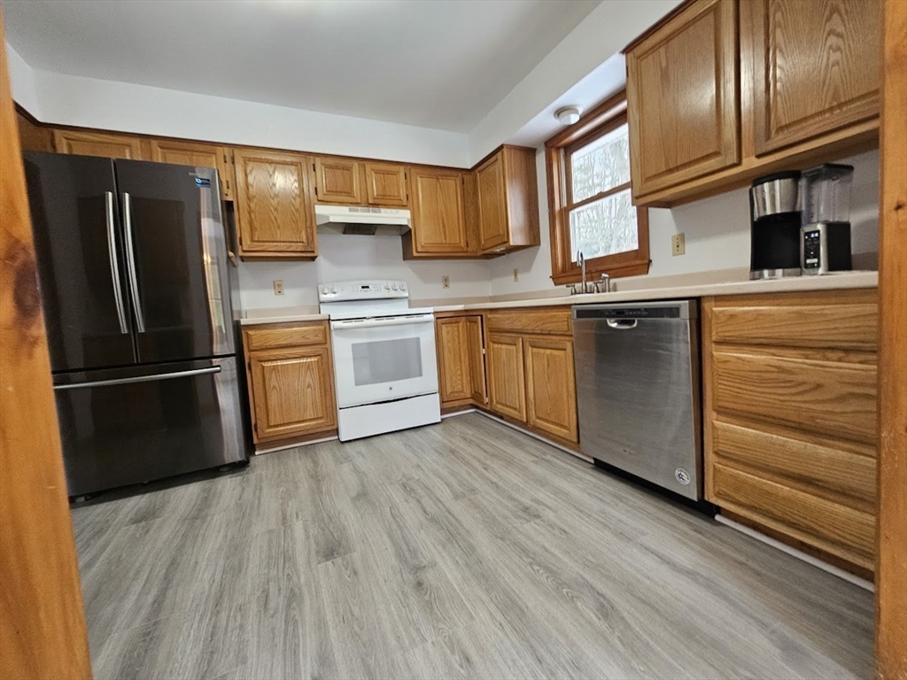 Welcome to 61 Randall Wood Drive! This home is situated on a beautiful corner lot in an established neighborhood close to both Turners Falls High School and Franklin County Tech. This home offers 4 good size bedrooms and 2 full baths. Upstairs you will find 3 bedrooms 1 bathroom, living room, dining, and kitchen. The living room offers access to the front balcony. Enjoy your morning coffee on the large back deck off of the dining room. Downstairs consists of a bedroom, den, bathroom, entryway and a mud room. This lovely, raised ranch has a heated 2 car garage attached for easy entry and for anyone looking to work in the cold winters. New floors throughout (excluding bathrooms) as well as fresh paint! Nothing to do but move in and enjoy everything this home and location has to offer. Come see for yourself!