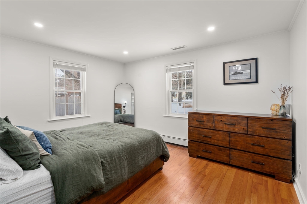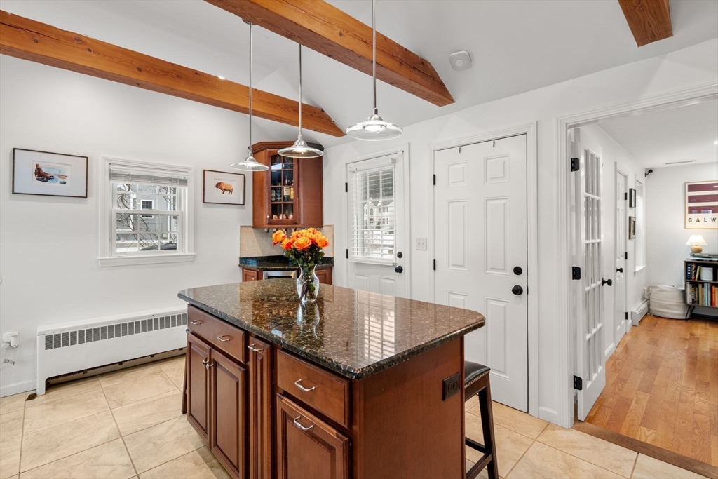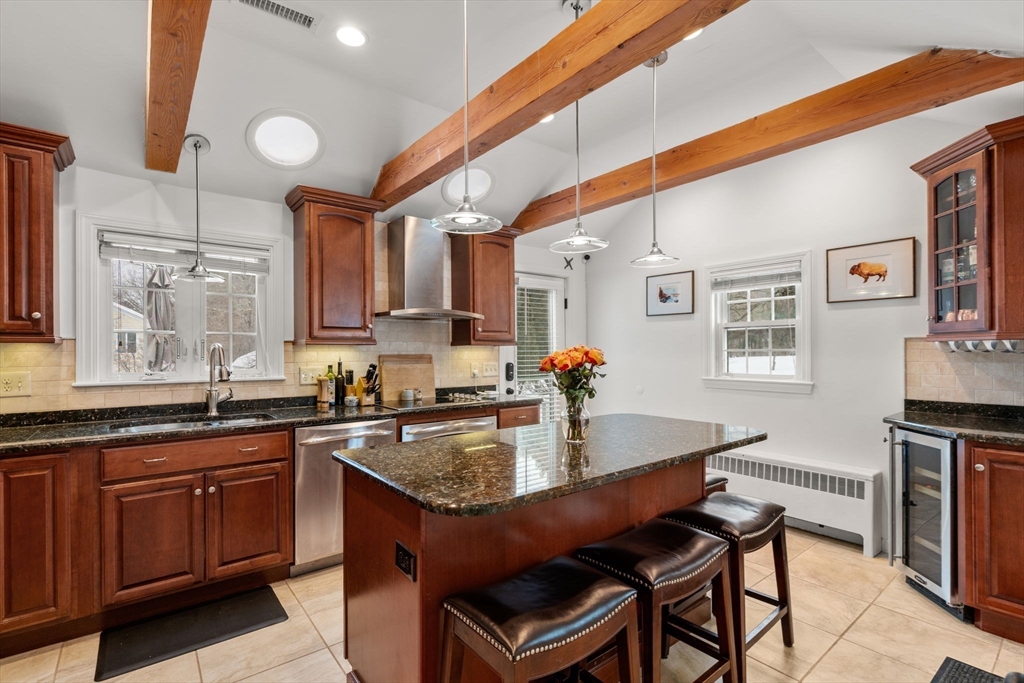 Conveniently located in Wilmington, this beautifully maintained 3 bedroom, 1 bathroom ranch offers comfortable one-level living and is move-in ready. The modern kitchen features a beamed ceiling with two skylights, granite countertops, all stainless steel appliances (including a wine fridge), plus ample cabinet storage. Just off the main living space are the three bedrooms and the adjacent full bath, creating a practical and functional layout. This home has received plenty of updates in recent years, including a ducted heat pump HVAC system and spray foam insulation in 2023, new recessed lighting throughout in 2022, and a repaved and widened driveway in October 2025. Enjoy the warmer months on the beautiful 15' x 14' back deck overlooking your backyard. Minutes from I-93 & RT 3, approximately 1.3 miles from the Wilmington Commuter rail station, and with easy access to Burlington's many dining and retail destinations.