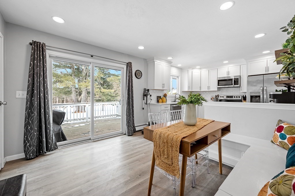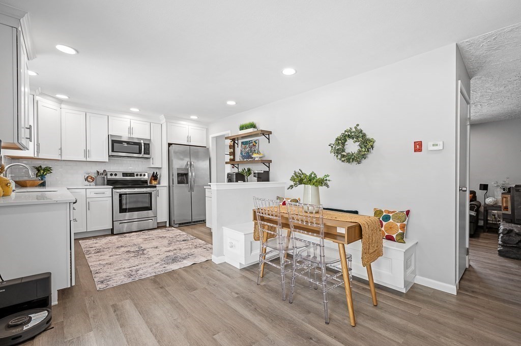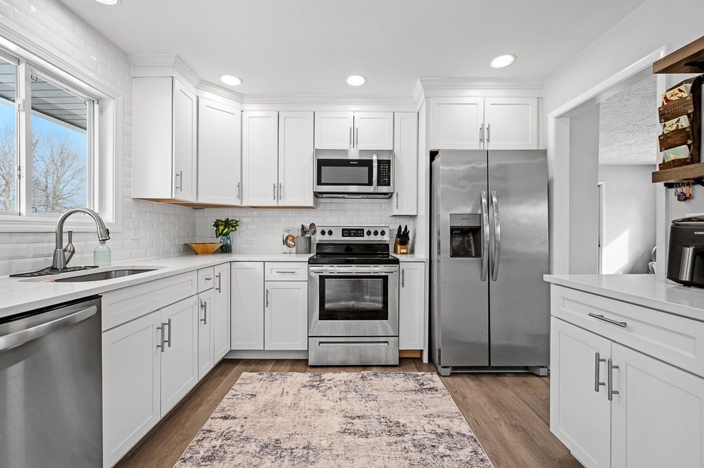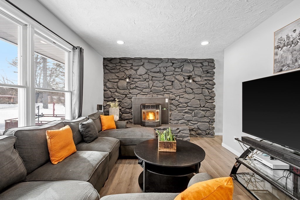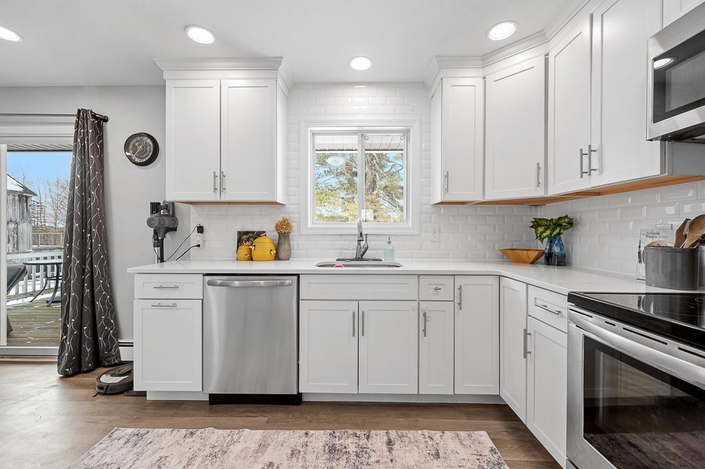 Come and see this newly renovated, move-in ready, ranch-style home. Enter into the living room adorned with a rock accent wall surrounding a fireplace. This large open concept room allows for great entertaining or simply a place to cozy up by the fire. The kitchen, with its beautiful white tile backsplash, new cabinets and stainless steel appliances makes anyone want to take a seat at the breakfast nook for a bite to eat! The kitchen has a sliding door leading out onto a deck that overlooks the large fenced in back yard. There are also two newly renovated bedrooms, one full and one half bathroom on the main level. Going down to the basement you will also find more space for entertaining and an additional fireplace. This is a beautiful home, waiting for you!