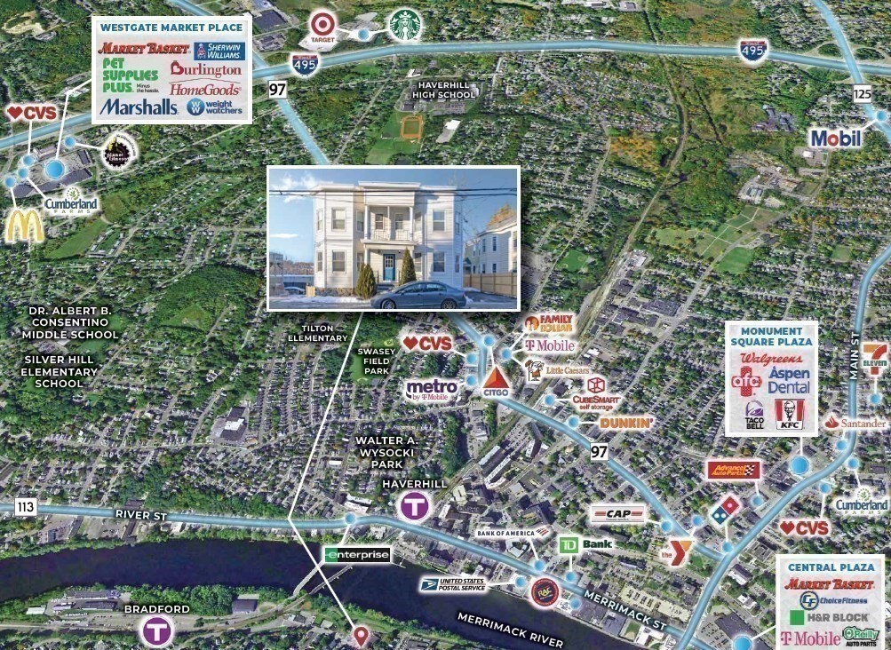 129 South Elm Street is well-positioned along South Elm Street in the Bradford neighborhood of Haverhill, offering convenient access to the city center and surrounding residential neighborhoods. The Property contains four (4) 3-Bedroom/1-Bathroom units and one (1) 2+-Bedroom/1-Bathroom unit and features six (6) off-street parking spaces. The Property benefits from proximity to Route 125 and Route 97, with quick connections to Interstate 495, ensuring efficient regional access to Greater Boston, the Merrimack Valley, and southern New Hampshire. The area’s rental appeal is driven by proximity to downtown Haverhill and the Bradford commercial corridor, which offers grocery, pharmacy, banking, and neighborhood dining options. Tenants are responsible for separately metered electricity, as well as gas powered heat & hot water. The Landlord provides city water and sewer to the property. The opportunity exists to acquire a well maintained asset in the desirable Merrimack Valley area.