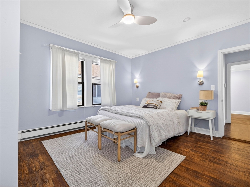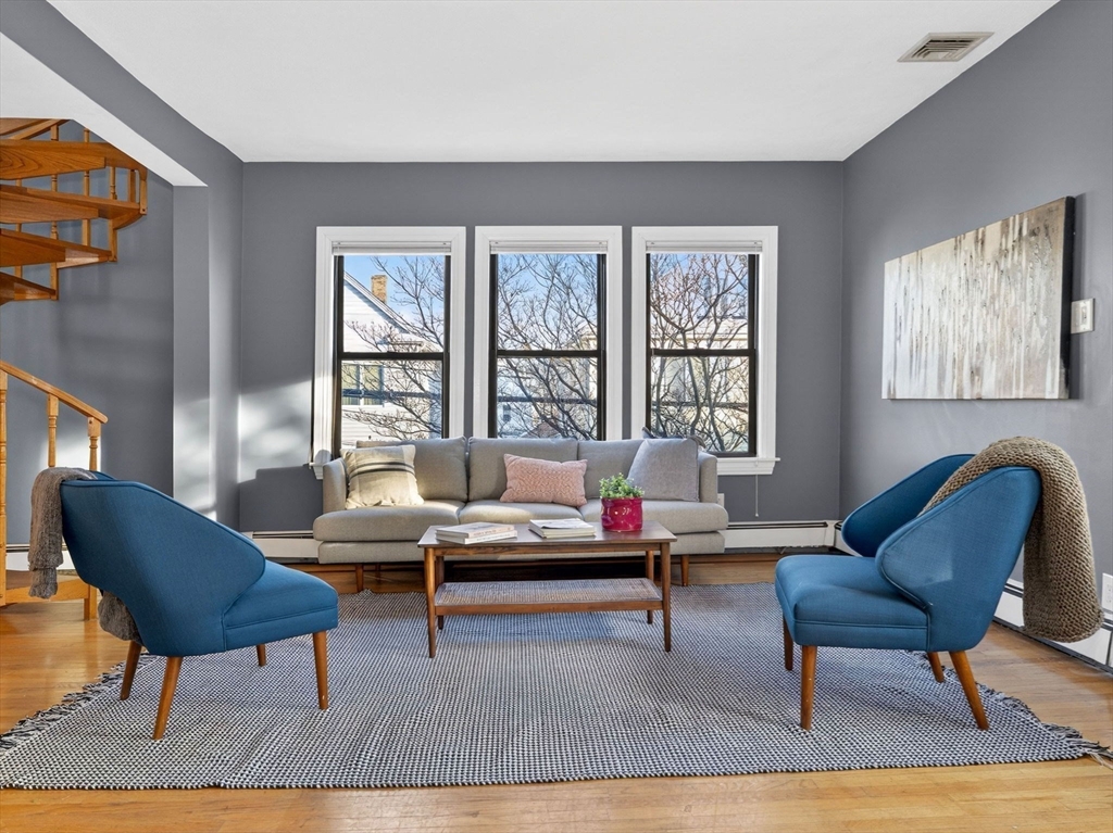 Welcome home to this bright and sunny 3 bedroom upper-level condo with a private entrance. Step inside and head upstairs to an open, spacious living and dining area featuring high ceilings and abundant natural light from oversized windows—perfect for both relaxing and entertaining. The updated kitchen (2021) boasts granite countertops, stainless steel appliances, and a large pantry, with plenty of space to add an island or breakfast table. The main level also includes two generously sized bedrooms and a full bath with a new vanity.The top level offers a third bedroom plus a bonus living area, providing a versatile blank canvas—ideal for a home office, playroom, or creative retreat. Additional highlights include two parking spaces, a new furnace, a private laundry room, extra basement storage, and a large fenced-in backyard complete with a deck, patio, and shed. In the Glenwood neighborhood, this home offers access to major roadways such as Fellsway, Route 16, and I-93.