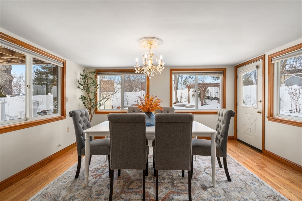 Located in the highly desirable Prescott School District, this expansive 5-bedroom, 3 full bath Colonial offers exceptional space, flexibility, & timeless charm. Beautifully refinished hardwood floors & gleaming millwork create a warm & elegant feel throughout. Sunlight fills the inviting fireplaced family room & flows seamlessly into the formal dining room & bright sunroom, perfect for everyday living & entertaining. The first floor also features two generous bedrooms & full bath, offering excellent potential for in-law suite or home office. The thoughtfully designed second-floor addition (built in 2000) provides three additional bedrooms & two full baths, including an enormous primary suite with walk-in closet & private bath featuring a relaxing jacuzzi tub. This home offers many updates, generous living space, & a flexible floor plan in a prime location-truly a must-see! Many improvements include HVAC/ Decks, & Covered Porch. One car garage & beautifully landscaped & fenced yard.