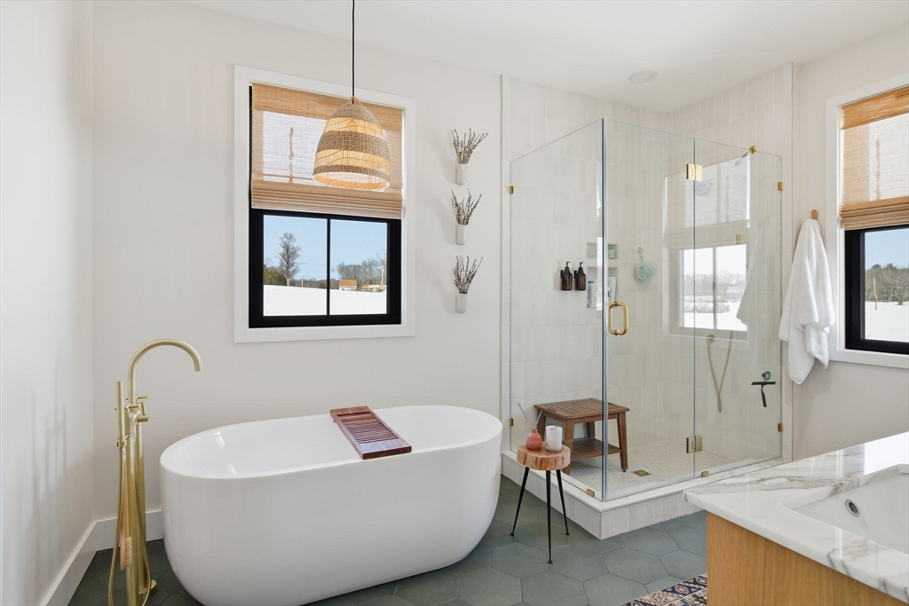 Welcome to this newly built custom farmhouse-style ranch, offering the perfect blend of modern luxury and effortless one-floor living. This 3-bedroom, 2-bath home features soaring high ceilings and a bright, open-concept floor plan designed for today’s lifestyle. The spacious living area flows seamlessly into a well designed kitchen with quality finishes, ideal for entertaining and everyday comfort. The private primary suite includes a beautifully appointed spa-like full bath and generous closet space, while two additional bedrooms provide flexibility for guests, home office, or family needs. A 2-car attached garage and energy-efficient new construction add convenience and peace of mind. Enjoy low-maintenance living in scenic Granby, MA, just minutes to Amherst, South Hadley, and area colleges. This custom-built ranch delivers modern farmhouse charm, luxury finishes, and turnkey convenience in one exceptional home. Showings begin at the OPEN HOUSE Saturday & Sunday 12-2pm.