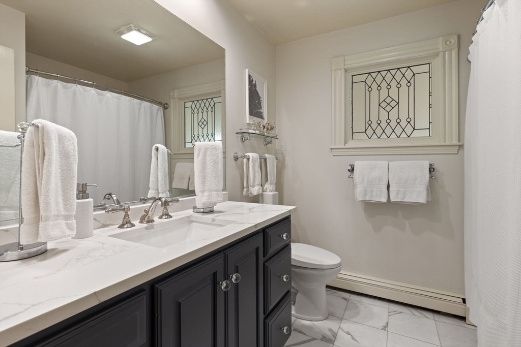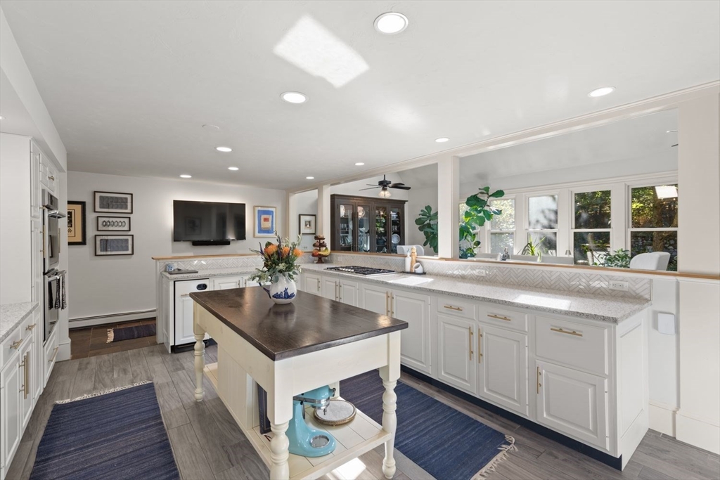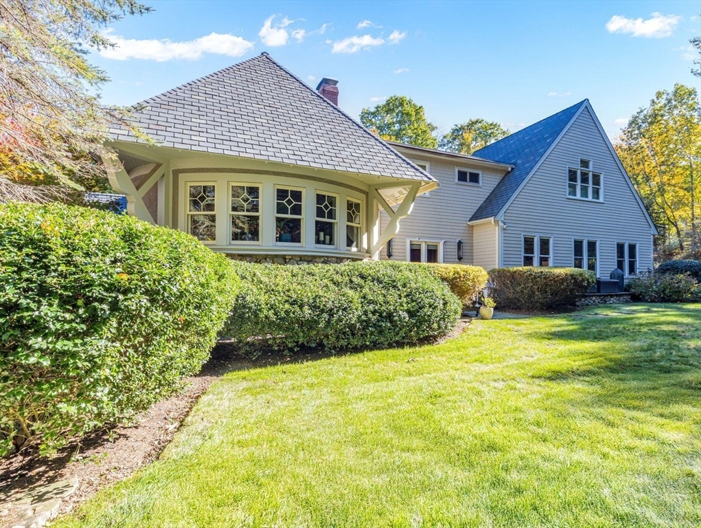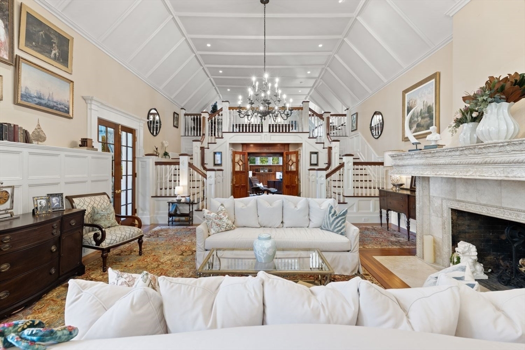Privately set behind an elegant iron fence and circular drive, this 4-bedroom, 3-bath, 6,175 sqft home blends historic charm with modern living. A marble-tiled entry welcomes you into a grand living room with 20-foot beamed ceilings and a dramatic limestone fireplace. The adjacent cherry-paneled library offers an inviting space to unwind or entertain. The expansive kitchen and family room were thoughtfully redesigned to create a warm, open layout with high-end finishes and seamless access to the rear terrace where a peaceful fountain, stone patio, and stunning fireplace create a private outdoor oasis. The primary suite comes complete with cathedral ceilings, a cozy fireplace, sitting area, and spa-inspired bath. Three additional bedrooms and a full bath complete the second floor. What was once the Pierce Memorial library, this home has been expertly restored to capture the essence of craftsmanship, character, and coastal living. Moments from North Scituate, the commuter rail & beaches.