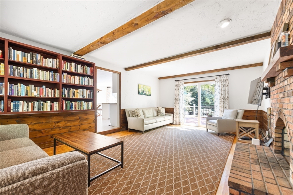 Spacious and bright Cape style home on one of the prettiest cul-de-sac streets in town. Sunny eat-in kitchen with plenty of storage, stainless appliances, step down to fireplaced family room, hardwood floors, 2-story living room with open staircase, first floor bedroom/office and huge deck with slider access from both kitchen and family room. This home has been nicely maintained with numerous updates including systems, windows, decking and more. Sunsplashed thruout with lovely views from every room. Privately sited on 3.2 level and open acres surrounded by stonewalls and woodlands with plenty of room for entertaining and play. Conveniently located with easy access to highly rated Dover-Sherborn schools and shopping. Just move in and enjoy!!!