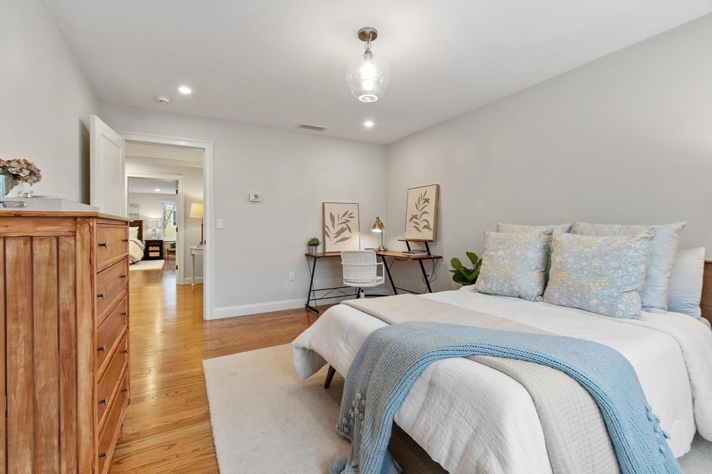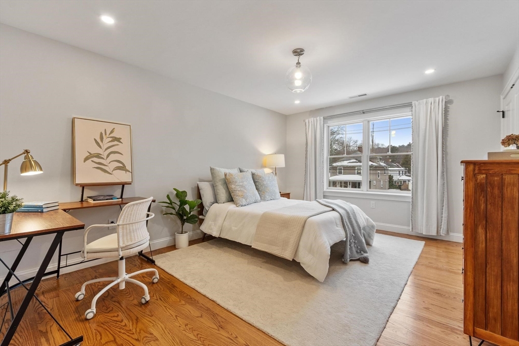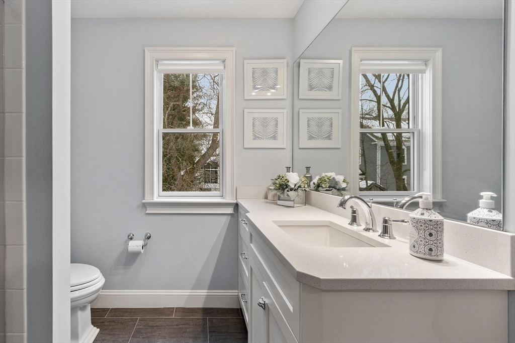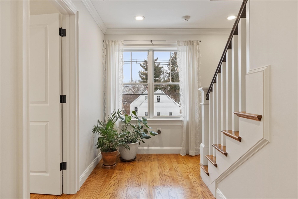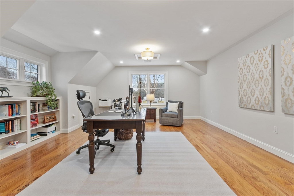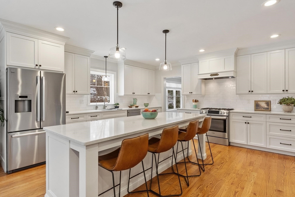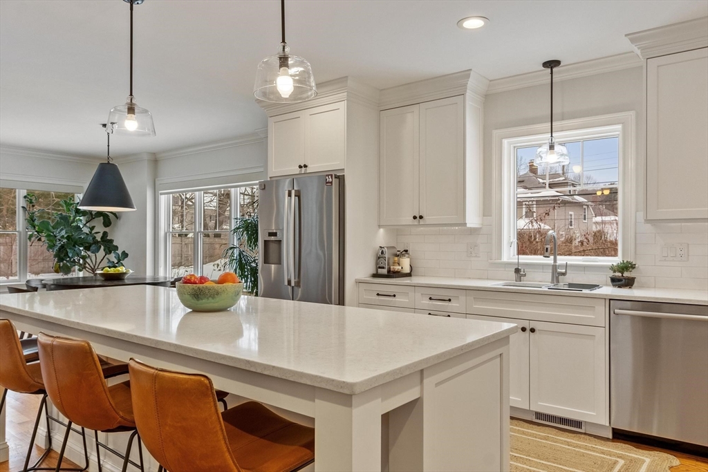 Sun-Drenched Sophistication! Built by renowned Finnegan Development, this young Colonial radiates warmth & modern finishes. The versatile floor plan is well-designed for easy living, featuring an open-concept kitchen & family room, and a formal dining room anchored by a coffered ceiling. A first-floor bedroom suite offers ideal space for guests or multi-generational needs. The second level hosts a sprawling primary retreat plus three additional bedrooms (including an ensuite and J and J bath). The finished third floor is a true "flex" sanctuary, ideal for a gym, quiet office, or additional bedroom with a full bath. Outside, the level, fenced yard—masterfully designed by local landscape architect Gary Larson, with mature plantings that provide seasonal color. Expansive lower-level is rough plumbed for a bath, allowing for easy future finish.. Well-located, this home is ideal for the family looking to be the home where the kids gather. Stroll to the Center, Diamond, or bike path.