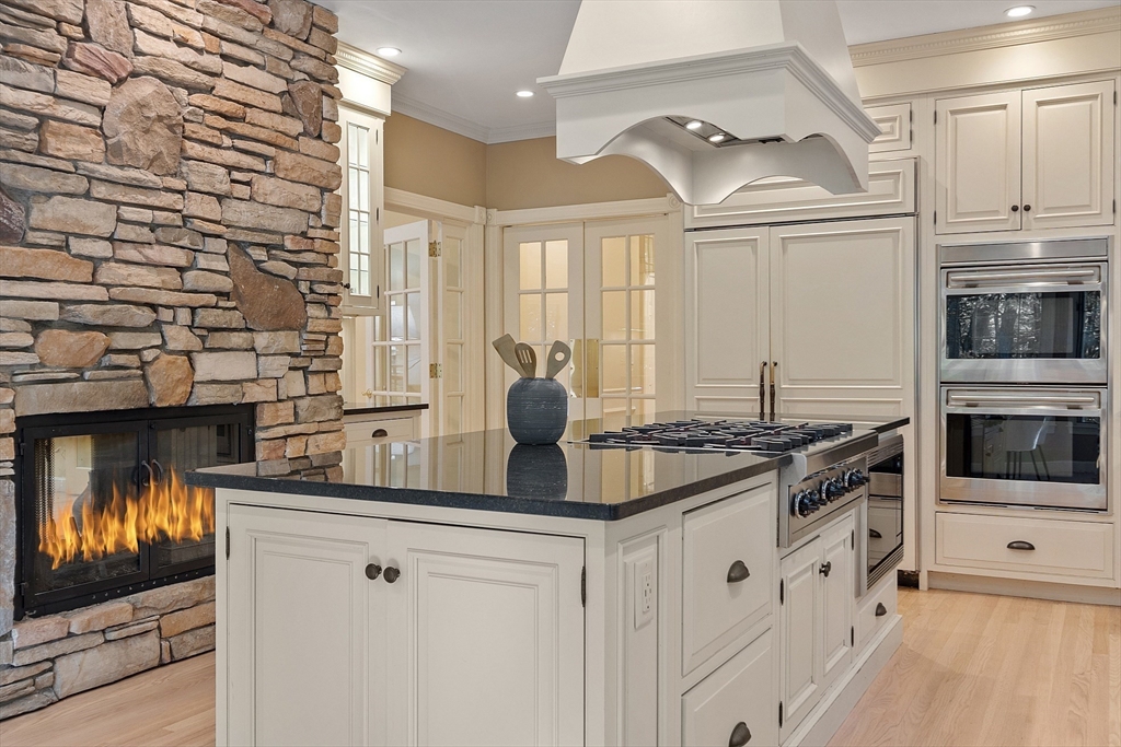 Privately set on 2 acres this impressive home blends classic charm with modern updates. Custom millwork, high ceilings and refinished HW floors add timeless sophistication. Recent updates include a new roof, exterior paint, new 5 bedroom septic system and updated baths. The well-appointed Chef’s kitchen w/eating nook shares a handsome, inviting double-sided stone gas fireplace with the bright, airy family room. Formal living and dining rooms feature a soft color palette for comfort and conversation. Office/study w/built-ins offers a versatile space. Upstairs, 4BRs includes a reimagined primary suite w/luxurious marble bath, jetted tub, double vanity and double shower, plus 2 family baths and laundry. The expansive bright walk-out lower level includes exercise room, game room, office and full bath making it ideal for guests, hobbies or as a home retreat. Located near the DeCordova Museum, major routes, and the commuter rail. Enjoy nearby conservation trails, flexible living and enduring