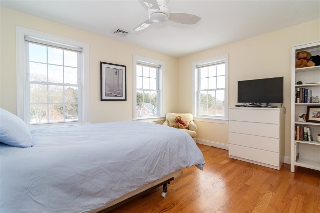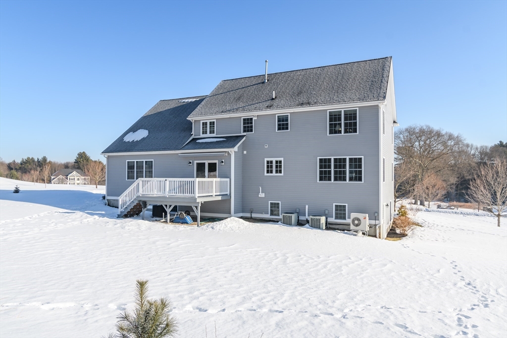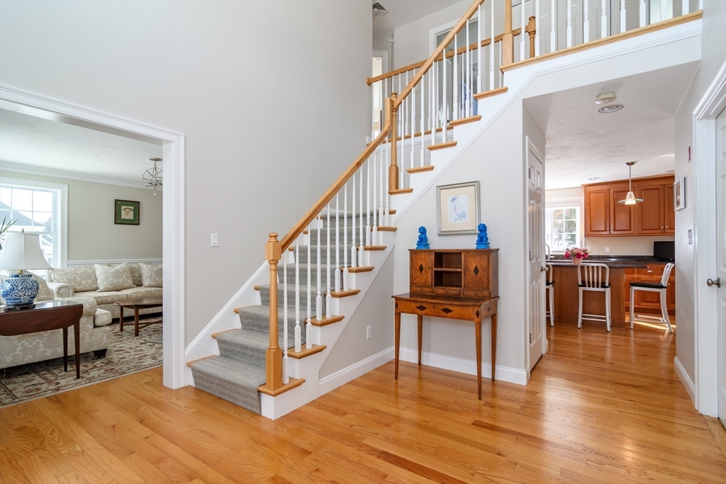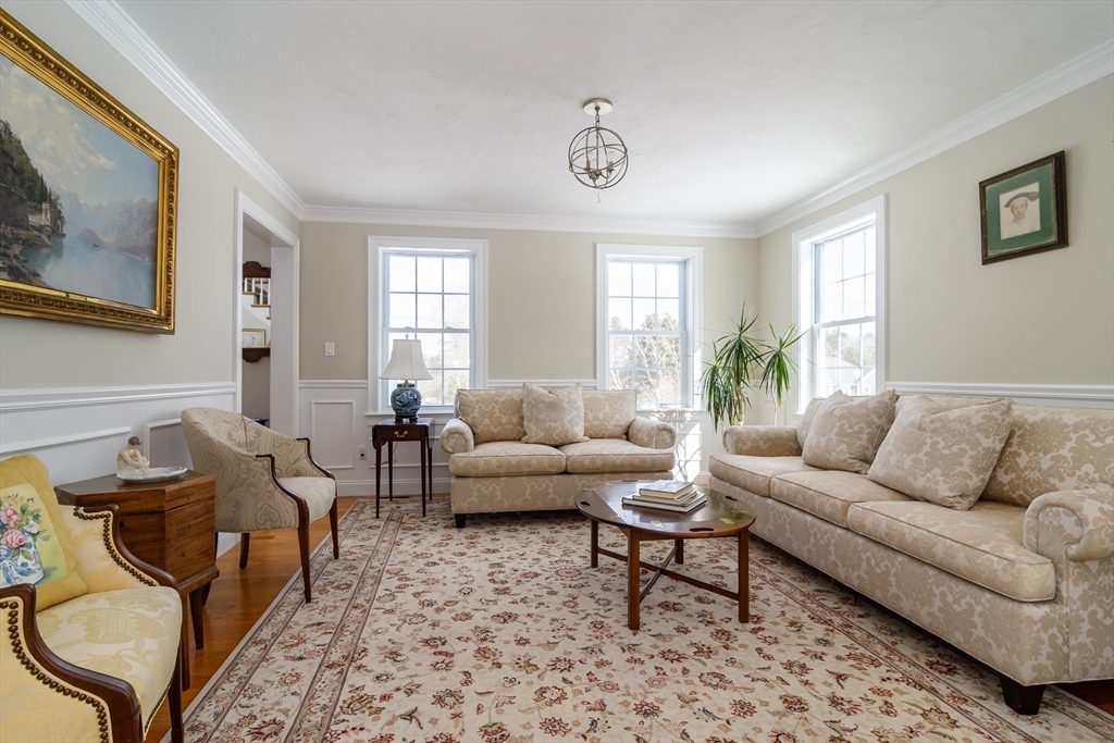 Stunning one owner Center Entrance Colonial set on 1.38± private acres & located in the exclusive Southend Farm neighborhood offering close proximity to Sherborn & Medfield center. The bright & spacious first floor plan includes a dramatic two-story entry foyer, home office, powder room, living room & formal dining room with sparkling hardwood floors. The cherry eat-in kitchen with ss appliances features a center island, walk-in pantry & dining area with sliders to rear deck. A vaulted ceiling family room includes a gas fireplace & walls of glass overlooking the scenic back yard. The second floor includes a luxurious primary bedroom with walk-in closet & en-suite bath. Three additional bedrooms, a full hall bathroom & laundry room complete the 2nd floor. Expansive walk-out unfinished basement (1584± SF) with heat & a/c ideal for exercise, playroom or storage. Two-car attached garage, natural gas heat, town water, underground sprinkler system, security system & updated siding.