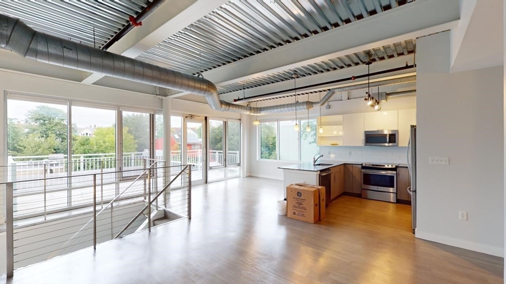 Bright and sunny corner 3 bedroom 3 bath with oversized deck in centrally located loft building! Unit sits on the second floor of elevator building located on the edge of Cambridge's Avon Hill and Porter Square. Kitchen is well equipped with stone center island, vented hood over the stainless steel oven, and includes dishwasher and disposal. Washer and dryer in unit as well as ample storage throughout spread across two levels of living. Heated garage parking offered for an additional $300/month and assigned outdoor parking $200/month Pet friendly building welcoming dogs and cats. Fantastic location offers unparalleled convenience with its proximity to public transportation options, a variety of shopping destinations, and an array of restaurants, ensuring everything you need is just a stone's throw away.