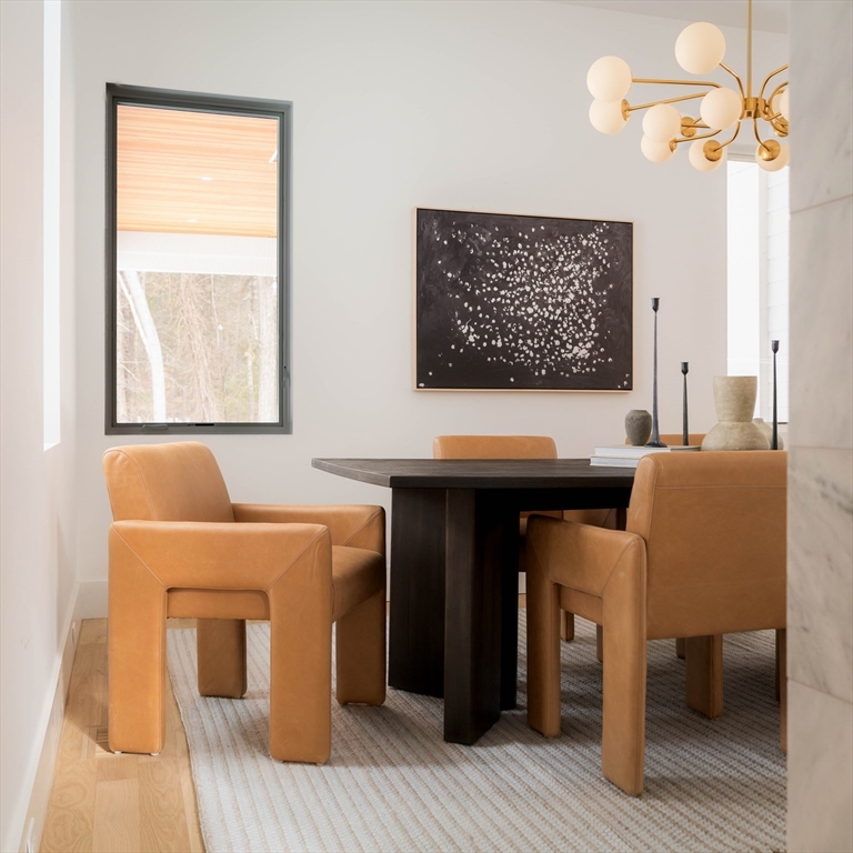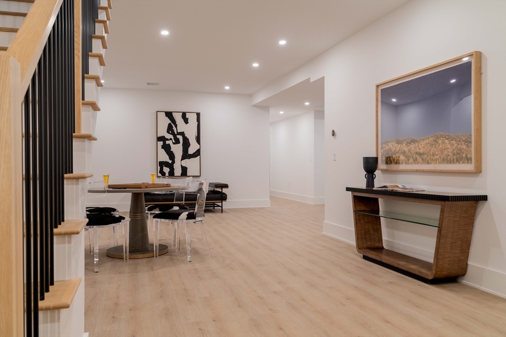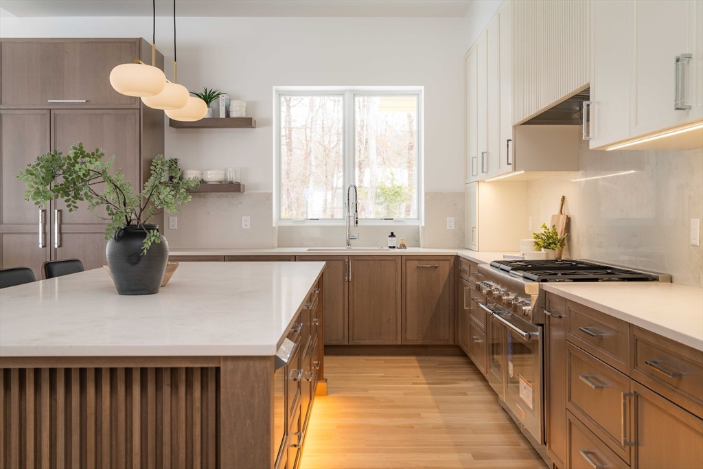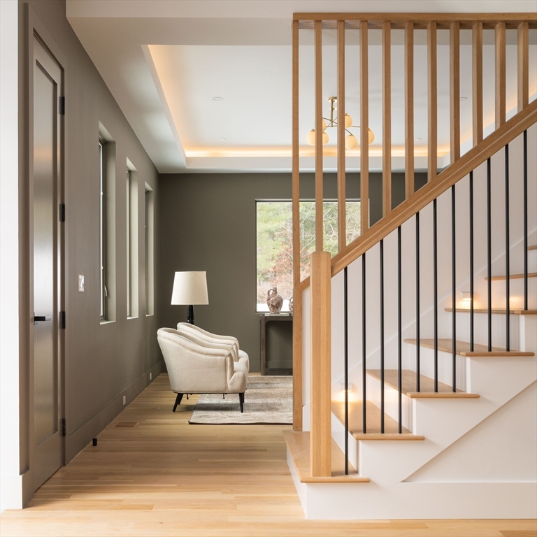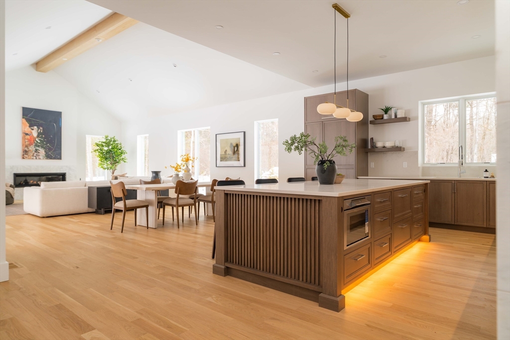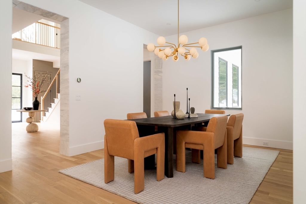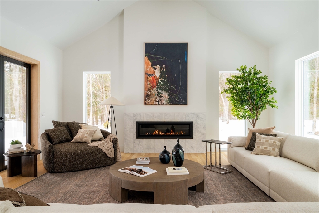 Welcome to 365 Charles River Street, a striking custom residence on a private 1+ acre lot. Designed for modern living, this home blends architectural sophistication with exceptional craftsmanship and luxurious finishes throughout. A dramatic two-story foyer opens to beautifully connected living spaces. The chef’s kitchen features premium appliances, custom cabinetry, oversized island & sun-filled breakfast area. It flows seamlessly into a spectacular family room with fireplace & retractable glass doors leading to the covered patio & expansive outdoor living space. Formal living & dining rooms add elegance, while a main-level ensuite bedroom or office, powder room, mudroom, & three-car garage provide flexibility. Upstairs, the primary suite offers a two-sided fireplace, sitting area, spa-like bath & large walk-in closet. Three additional ensuite bedrooms and laundry complete the level. The finished lower level includes a bedroom, full bath, gym, media room, lounge, & wet bar.