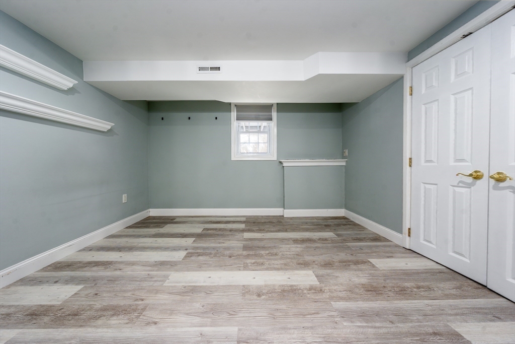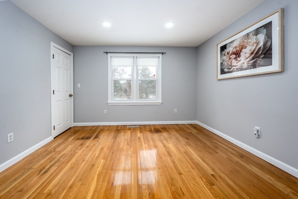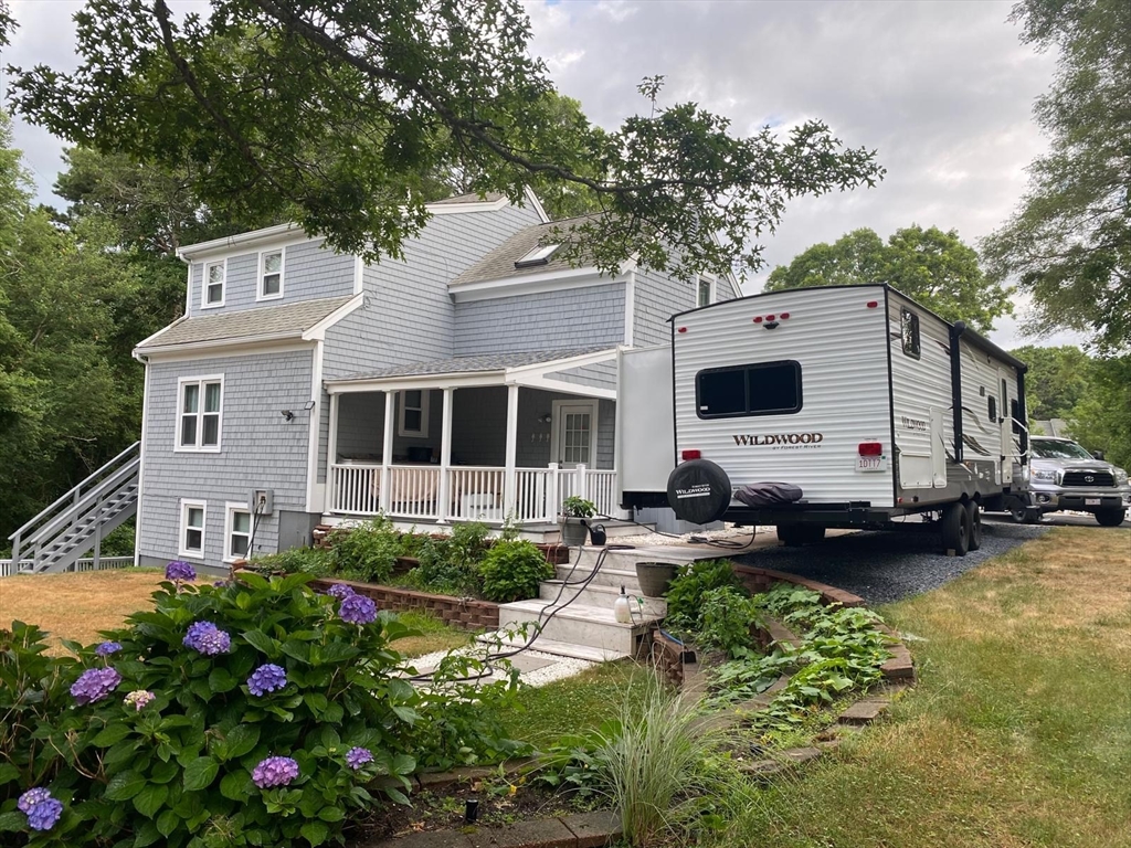 Nestled at the end of the street, you will enjoy this welcoming, sunny and bright 3-bedroom, 2 bath Cape Cod home. The home has been updated throughout the years and the thoughtfully designed layout offers flexibility for all of life's phases. Step inside to an inviting cathedral living room with fireplace, the spacious kitchen features an island with Quartz countertops and through the sliding door you will see the deck that is perfect to entertain with family and friends. Also, in the main floor you will find the primary bedroom with ensuite overlooking the beautiful backyard. Upstairs, two generous bedrooms with a shared bathroom that is has been renovated and a large walk-in closet. Also, a balcony overlooking living room perfect for your computer/reading area. The garage has been updated to a tv/family room. Nestled on a 0.71 acres, the backyard offers two sheds, a kids tree house and an area to entertain customized with kitchen gadgets. Central AC, Hardwood floor throughout, reces