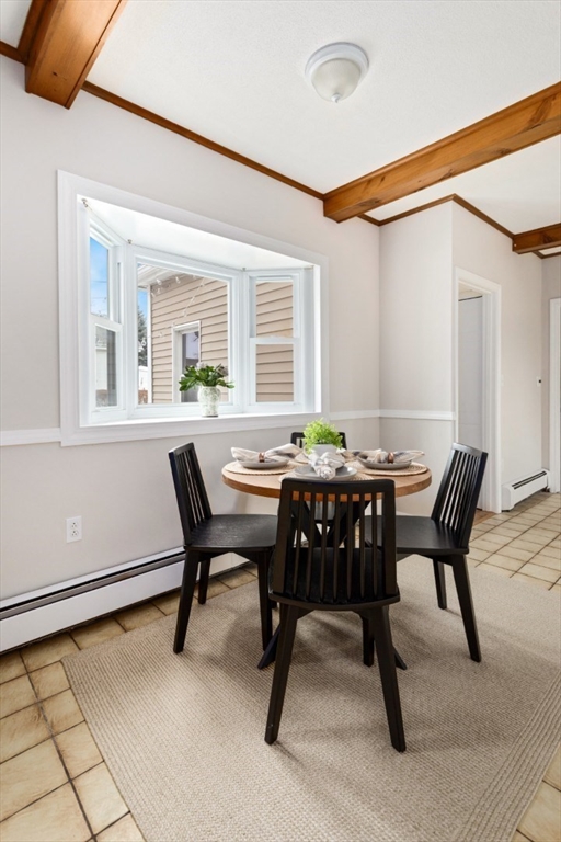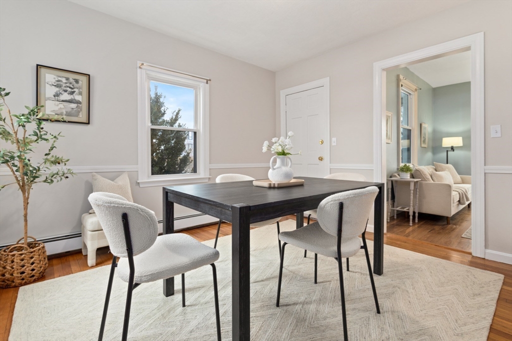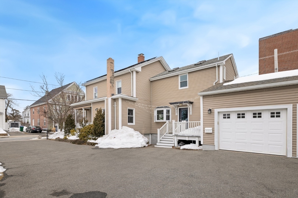 This beautiful, 3-bedroom, 1.5 bath townhouse sits on a 10,770 sq. ft lot & is a stone's throw from everything Medford & Boston have to offer! Experience the restaurants, markets & shops of Medford Square, or easily trek to Boston with the proximity to Route 93 or the local bus routes to multiple MBTA stations (orange/green line, cmtr. rail). You’ll get a “single-family feeling” in this WARM & SUNNY townhouse w/ BEAMED kitchen ceilings, an elegant dining room, a DEDICATED OFFICE, 1-car garage & energy-efficient solar power to help keep energy bills low. South-facing main living area invites the sun into your kitchen, dining & living room throughout the day. Great location next to Roberts School, down the road from Hickey Park & Gillis Field, close to hiking paths along the Fells, markets, eateries, & the popular Chevalier Theater. Catch a show without parking! This is a commuter's dream that is just minutes from the heart of Medford that truly feels like single-family living!