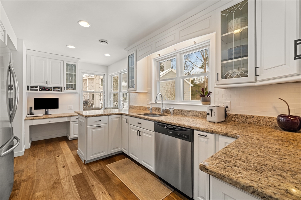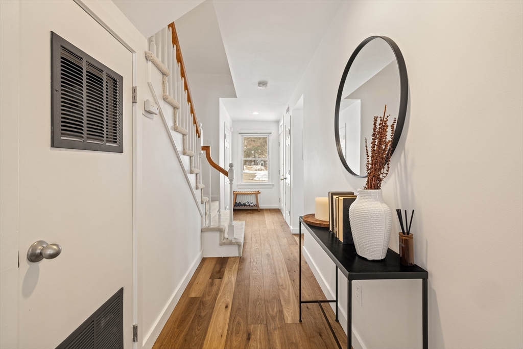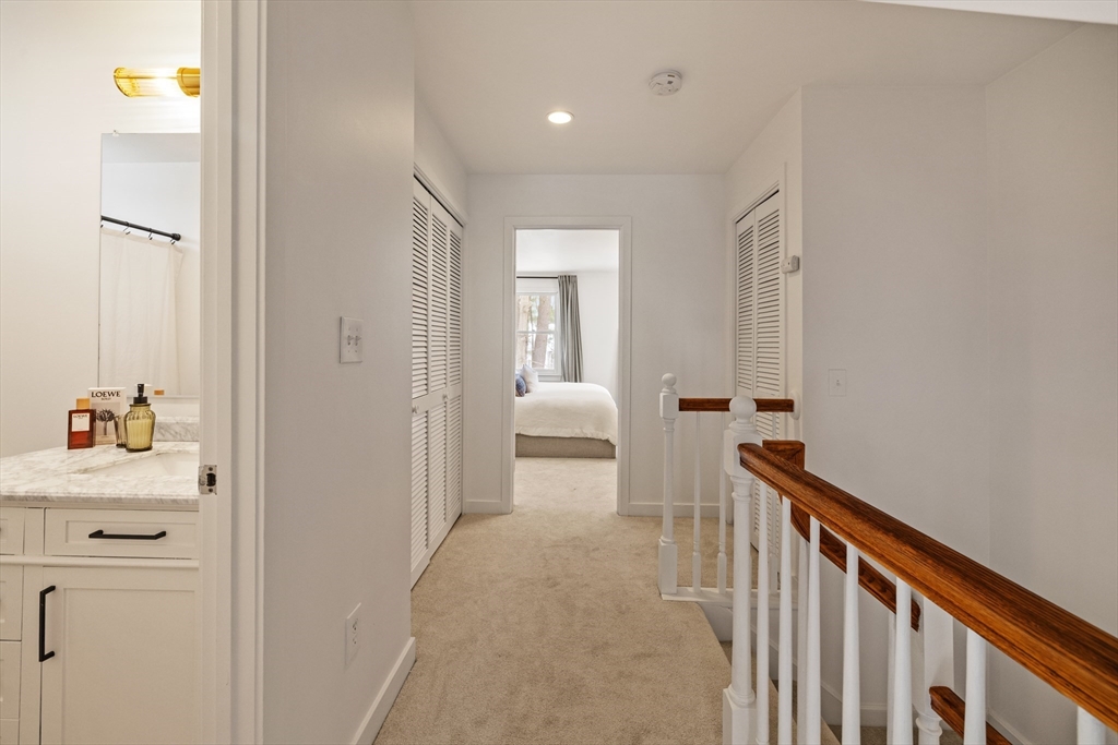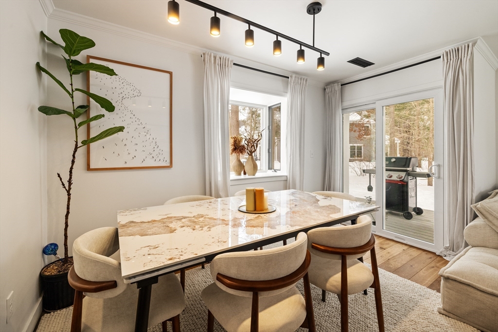 Welcome to a truly one-of-a-kind end-unit condo in Rockland - thoughtfully curated to live like a single-family home. Privately tucked into a wooded community just off Route 3, only 20 miles to downtown Boston. This 2 bed + oversized loft, 2.5 bath home blends modern updates with a warm, cozy feel. Fully refreshed in 2025 with brand-new European oak hardwood floors, plush carpet upstairs, and fresh paint throughout create a bright, inviting atmosphere from the moment you step inside. The updated kitchen features granite countertops, stainless steel appliances, and sleek black fixtures, while the gas fireplace adds the perfect inviting touch. The expansive third-floor loft offers flexible space for guests, a home office, gym, or play room. With recent roof and siding upgrades, new landscaping coming this spring, plus pool and tennis amenities - all minutes to shopping, parks, and beaches. A rare opportunity to own something that feels different, refined, and truly yours.