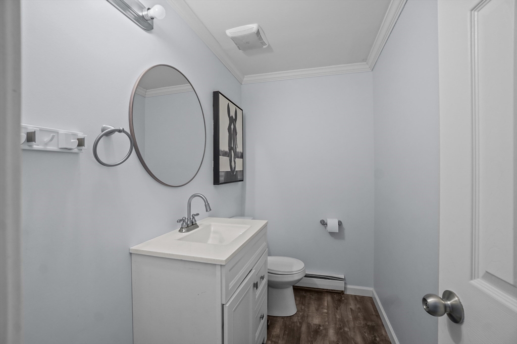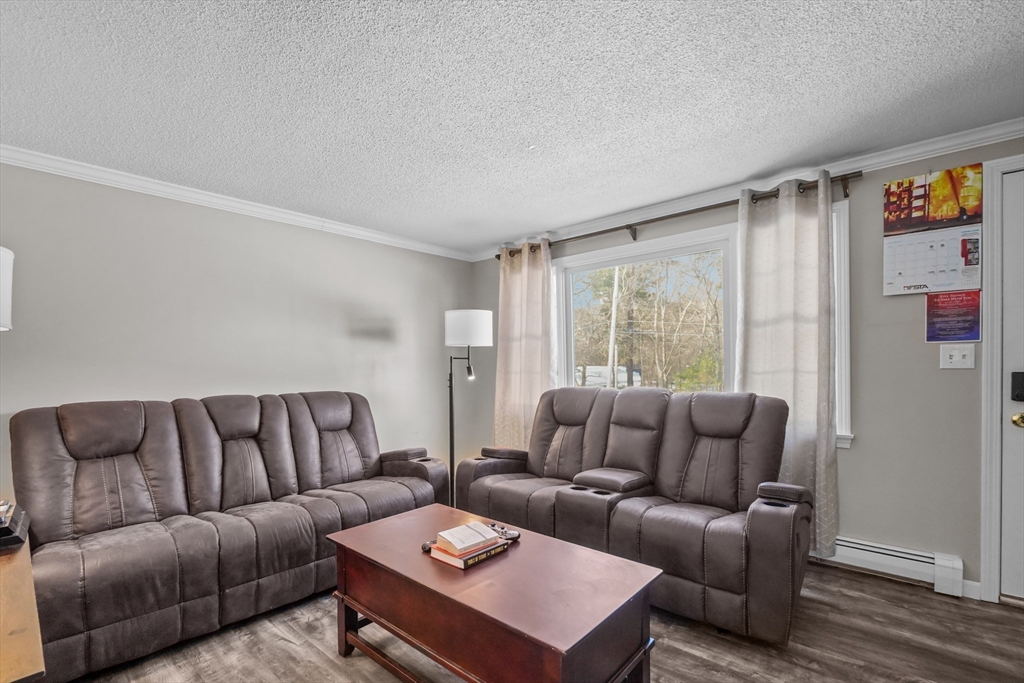 Style, space, and standout features—1638 Plymouth St in Pompanoho Pines delivers the wow! This sun-splashed 3-level condo/townhouse offers a granite eat-in kitchen with stone backsplash, designer shiplap accent wall, and an inviting living area with oversized picture window. Two spacious bedrooms, 1.5 baths, and double closets in the primary add everyday comfort. The finished lower level brings bonus lifestyle space—perfect for a media lounge, office, gym, or game room—plus laundry and storage. Entertain with ease on your private fenced deck and enjoy walk-up attic storage, 2 assigned parking spaces, and guest parking. Pet friendly with restrictions. Minutes from Robbins Pond for fishing, canoeing, and unforgettable sunrise and sunset views. Solar panels help reduce electric bills and low condo fees boost value. Move-in ready and packed with perks!