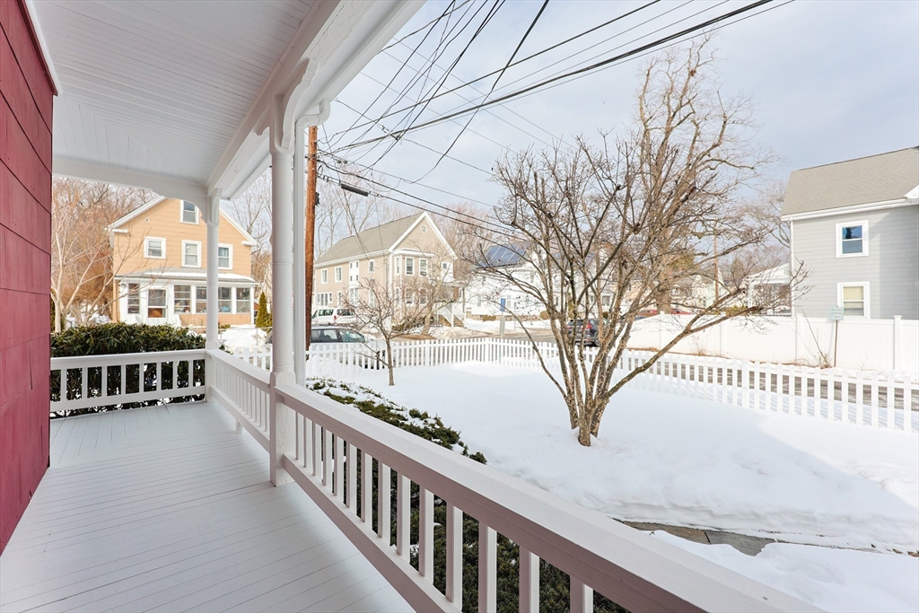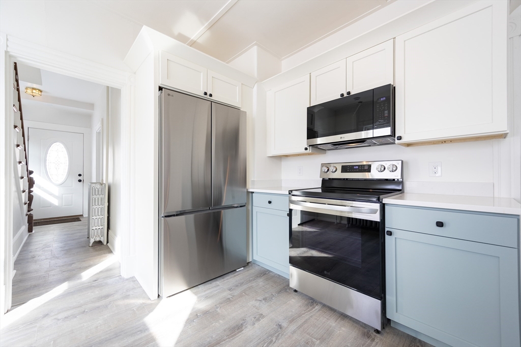 Generously sized Colonial offers a flexible, inviting floor plan enhanced by recent upgrades. The redesigned kitchen features solid cabinetry, Carrara Miksa quartz countertops, high-end luxury vinyl flooring, and new LG appliances, creating optimal flow for everyday living and entertaining. The kitchen opens to a formal dining room and spacious living room, both freshly painted with new luxury vinyl flooring. A full bath and first-floor bedroom provide added convenience and flexibility.Upstairs, the primary bedroom and two additional bedrooms offer comfortable living space, including a guest bedroom with a walk-in closet. The updated full bath features new tile flooring, vanity, toilet, and shower stall.High ceilings and classic architectural details blend with modern updates throughout. A finished attic with two rooms offers flexible use and is accessed via pull-down stairs. Enjoy a wrap-around farmer’s porch, fenced yard, convenient access to the commuter rail, Route 9, and MA Pike,