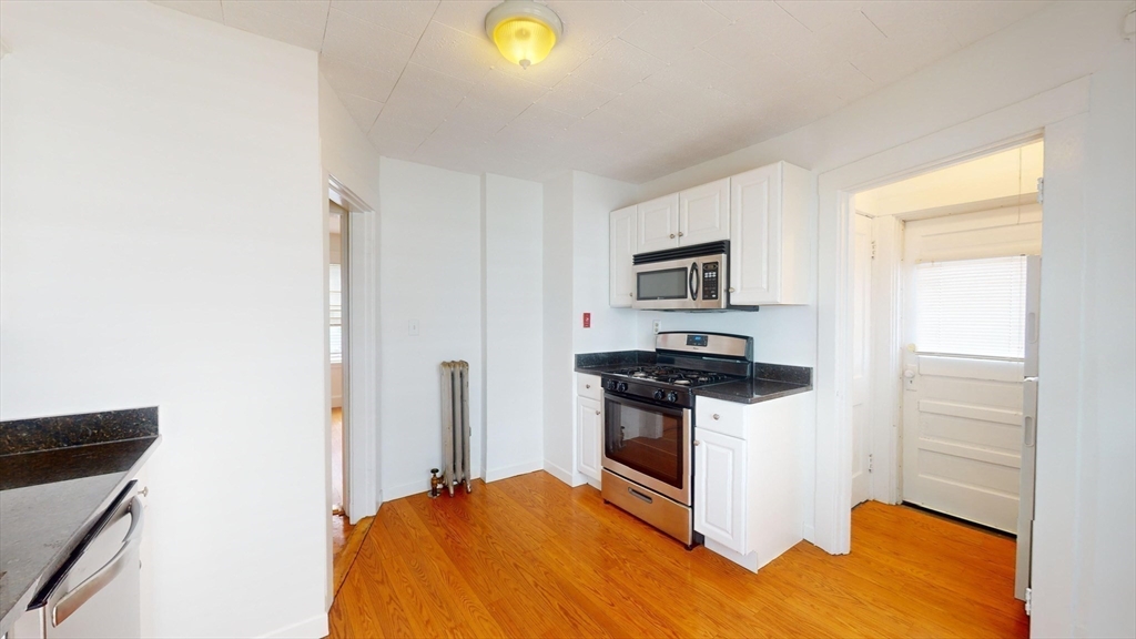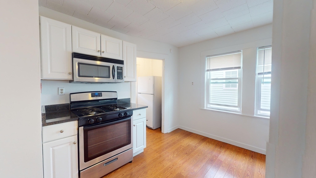 MODERN, Sunny flexible space of 4rms/1bd on the 1st floor- avail March 15. 2 car off street tandem parking. Hardwood floors. Large Living room. Good Sized bedroom. Home Office. Newer Granite Kitchen with white cabinetry and stainless steel appliances. Newer Ceramic Tile bathroom. Ample closets. Gas cooking, gas heat, Gas hot water. A passive - breed restricted animal will be considered on a case by case basis- $50 a month for a cat, $100 for a dog. Laundry for your use in the basement. Shared yard with patio. Enjoy the vast Morrison Park recreation with Tennis and Basketball Courts, Area Restaurants, Minutes to Fellsway, Route 93 and the bus line! Tenant pays gas heat, hot water and electricity. Upfront costs include First and Security.
