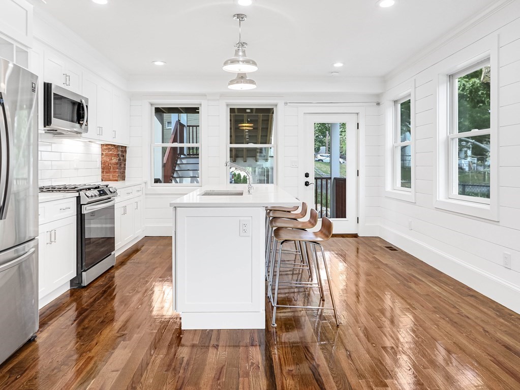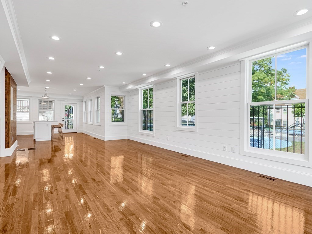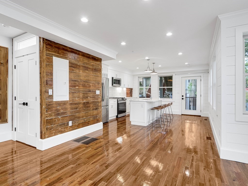This park side location presents a luxurious residence in great condition, distinguished by its amazing design and the incorporation of top-tier materials throughout. The living room offers an inviting atmosphere, enhanced by elegant crown molding and a striking wood wall, creating a sophisticated backdrop for relaxation and social gatherings. A bedroom within this residence features both a distinguished wood wall and elegant crown molding, providing a refined personal space for repose. The culinary space is a true highlight, equipped with a tasteful backsplash, a convenient kitchen bar, and a generously sized kitchen island, all complemented by exquisite stone countertops and classic shaker cabinets. A distinctive wood wall and elegant crown molding further elevate the amazing design of this central area, making it ideal for both everyday routines and entertaining. W&D Included. Outdoor space & cobblestone patio. 2 & 1/2 custom designed baths. 2 deeded off street parking spaces