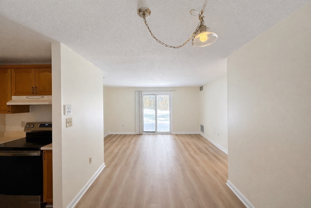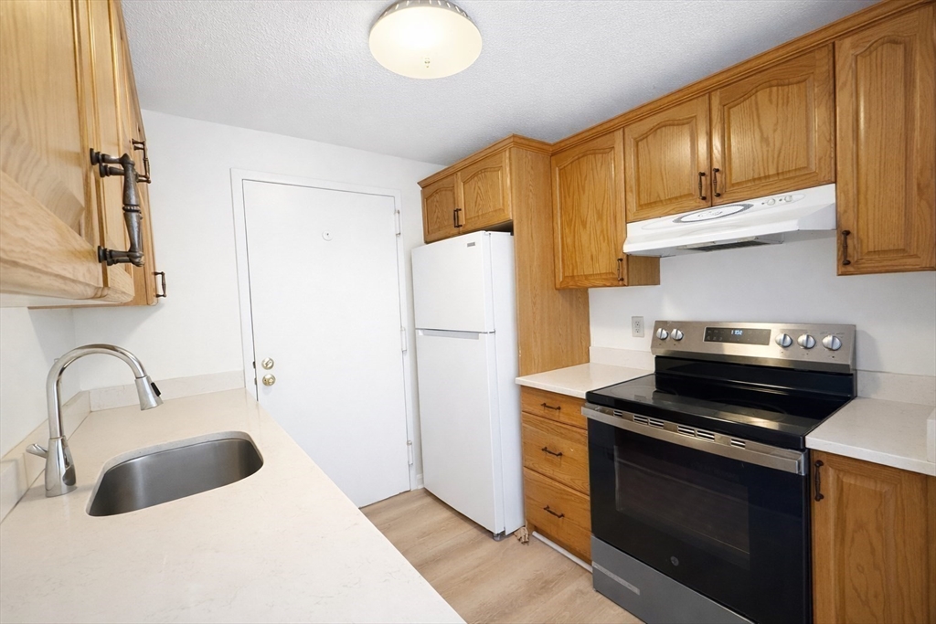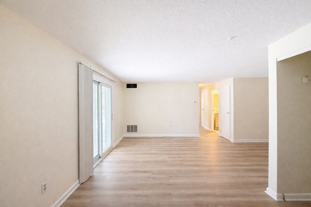 Welcome to this beautifully refreshed first-floor condo in the highly desirable Natick Village community. Freshly painted throughout with brand-new flooring and a brand-new range hood, this home feels bright, clean, and move-in ready. The kitchen features a white quartz countertop and a practical layout. The spacious living room is filled with natural light and opens through sliding glass doors to a private ground-level patio overlooking peaceful green space — perfect for morning coffee or relaxing evenings.Both bedrooms are generously sized with large closets, and central A/C ensures year-round comfort. Enjoy community amenities including a pool, tennis courts, fitness center, professional landscaping, and on-site management. Unbeatable commuter location — directly across from West Natick Commuter Rail and minutes to Rt. 9, Rt. 30, and the Mass Pike. A fantastic opportunity for convenient, low-maintenance living.