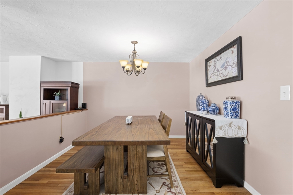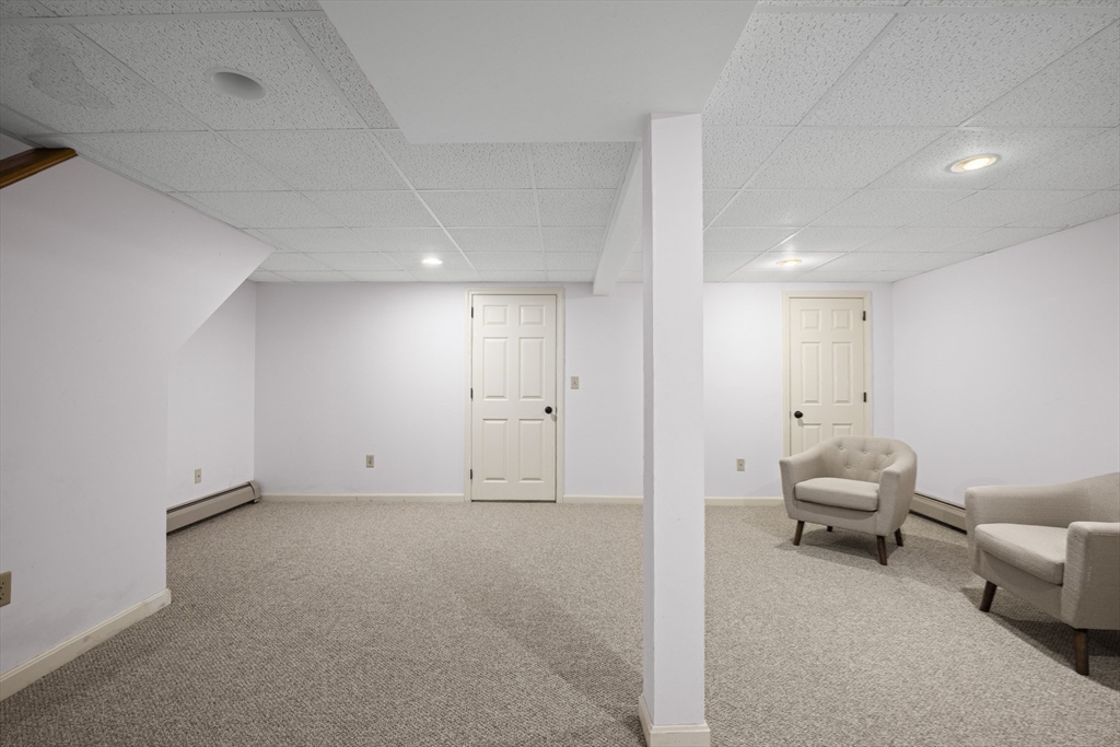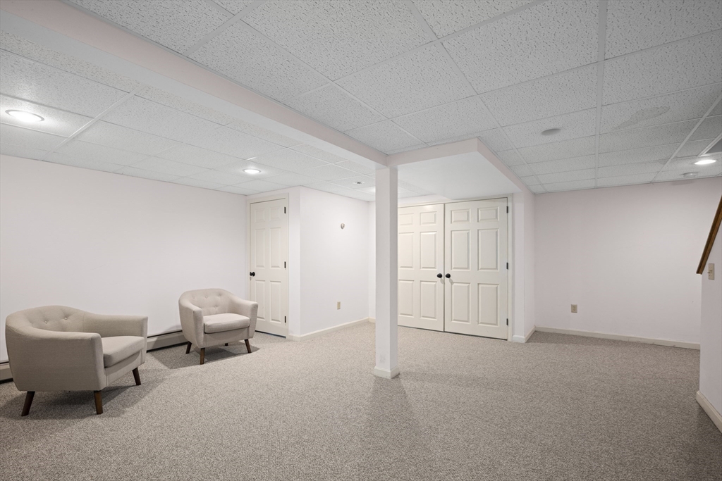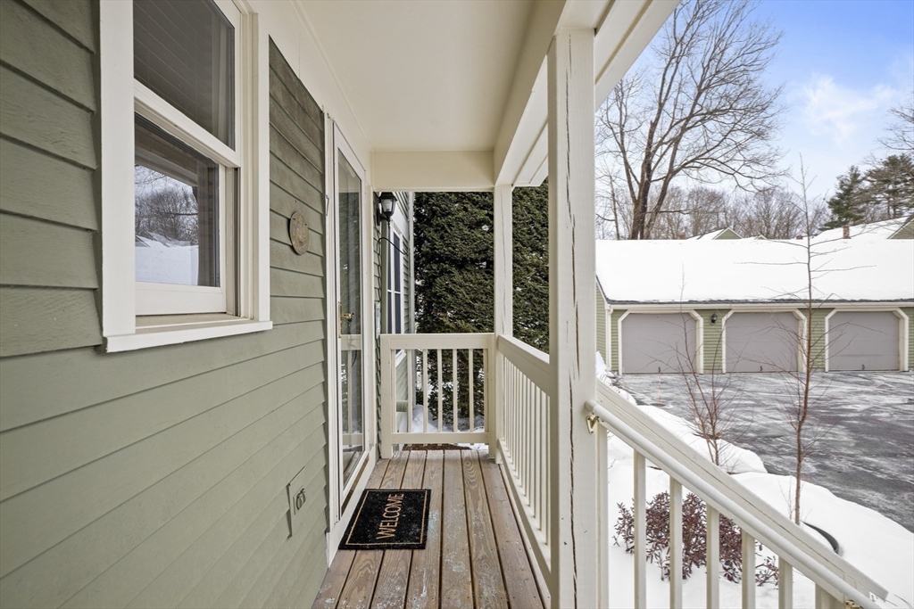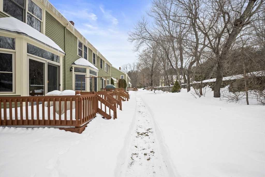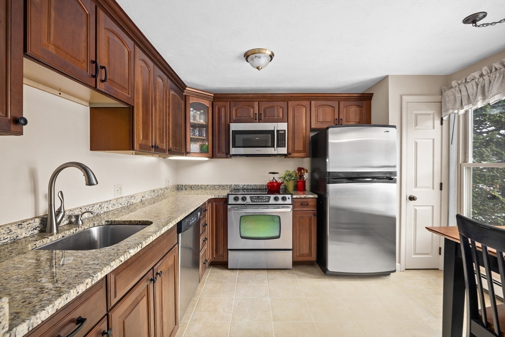 This meticulously maintained distinguished four level townhome presents an opportunity for refined living. The expansive living area features a remodeled sun-splashed kitchen with granite counters and stainless appliances. Within this generous footprint, 3 dedicated bedrooms with abundant closet space provide individual retreats, with the expansive 3rd bedroom/in-home office w/15 X 8 attic access providing office or guest space. The dramatic sunken living room with 9' ceilings and sliders open up to the new deck with a view that overlooks beautiful bucolic grounds. Newly carpeted 20X20 finished basement space is prepped for baseboard heat with a heating zone perfect for a bonus room. Designated single garage space, offering secure vehicle accommodation and valuable storage capacity. Newly built front porch for relaxing with morning coffee. Super convenient commuting location only minutes to 495. Kayak or swim at Kiwanis Pond just 1.5miles away.