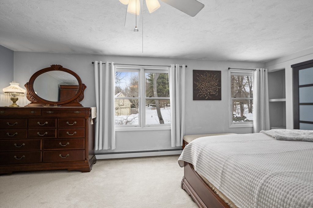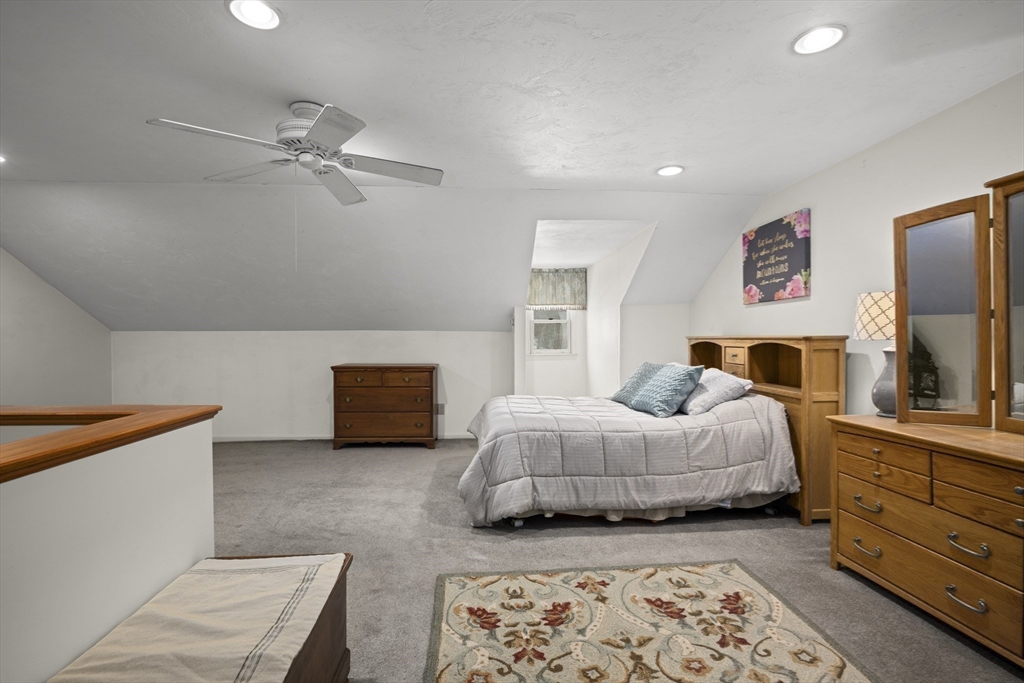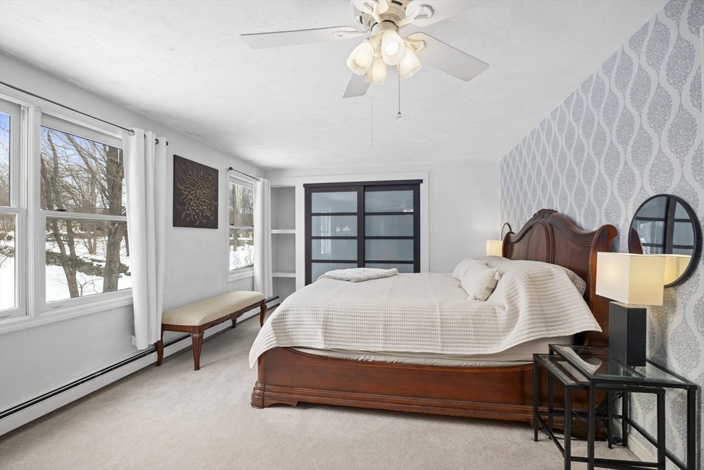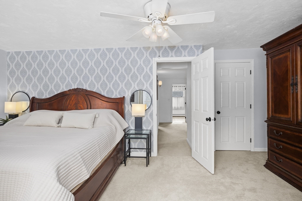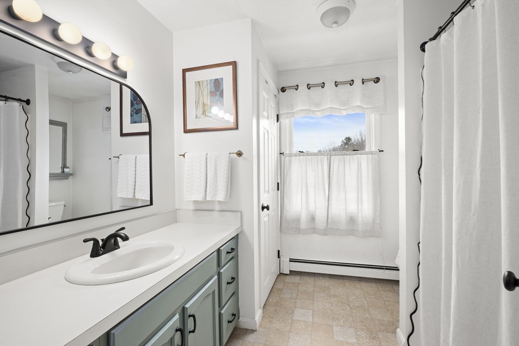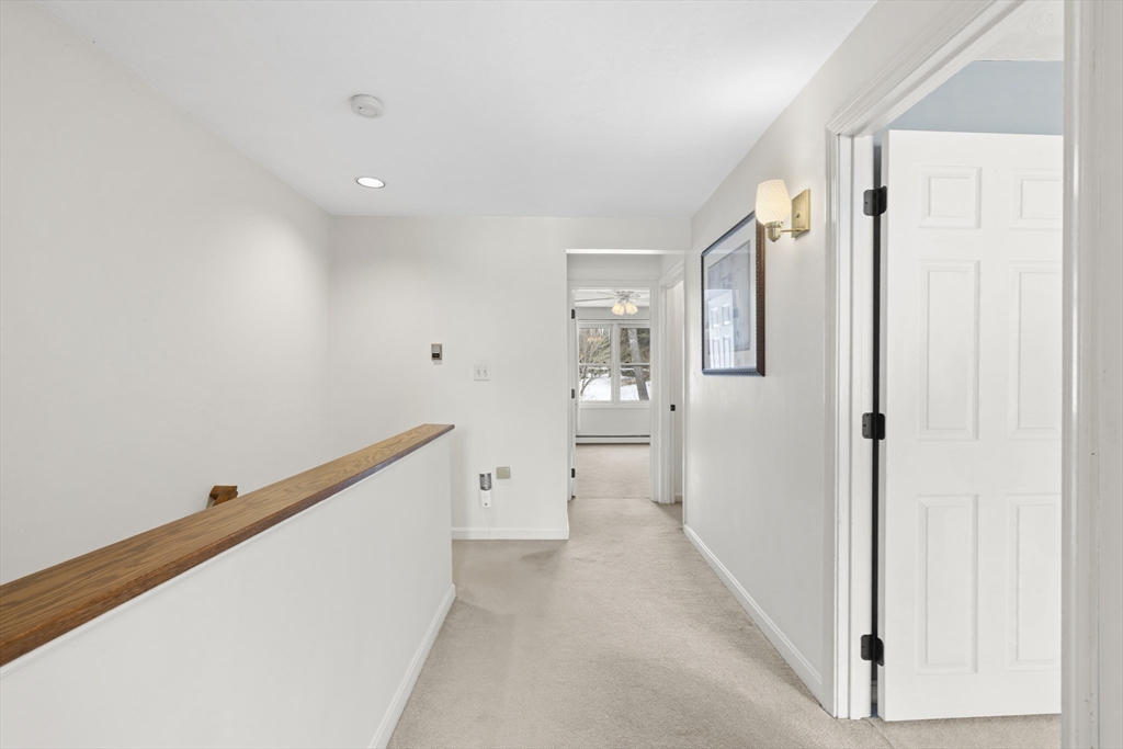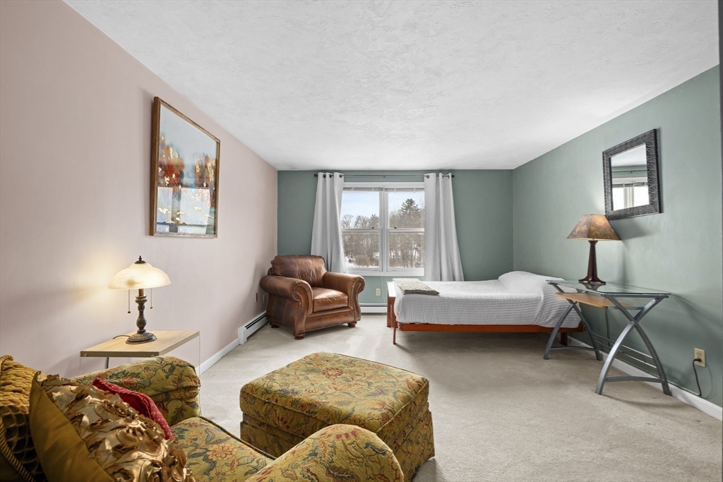 This meticulously maintained distinguished four level townhome presents an opportunity for refined living. The expansive living area features a remodeled sun-splashed kitchen with granite counters and stainless appliances. Within this generous footprint, 3 dedicated bedrooms with abundant closet space provide individual retreats, with the expansive 3rd bedroom/in-home office w/15 X 8 attic access providing office or guest space. The dramatic sunken living room with 9' ceilings and sliders open up to the new deck with a view that overlooks beautiful bucolic grounds. Newly carpeted 20X20 finished basement space is prepped for baseboard heat with a heating zone perfect for a bonus room. Designated single garage space, offering secure vehicle accommodation and valuable storage capacity. Newly built front porch for relaxing with morning coffee. Super convenient commuting location only minutes to 495. Kayak or swim at Kiwanis Pond just 1.5miles away.