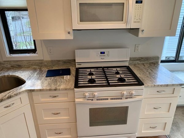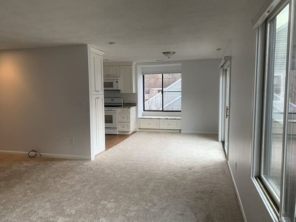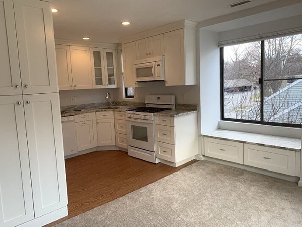 This fully renovated, bright corner unit is located in prestigious Concord Greene community. 1BR/1BA unit features great open floor plan with spacious living room, dining area with sliders opening to the balcony overlooking the landscaped yard and pond, a large master bedroom with walk in closet with custom shelving, full bath, laundry and a bright kitchen with stone counter tops. Amenities include a swimming pool, tennis court, exercise room and garden area. Two parking spots included with the rent - one under the carport with extra storage and another spot in the parking lot. On site management. Conveniently located near the clubhouse, tennis courts and pool, this wonderful unit is a great opportunity to live within walking distance to vibrant West Concord shops, restaurants, library, park and commuter rail. Rent includes heat, hot water, gas for cooking, water, trash removal, and landscaping. Just move right in!