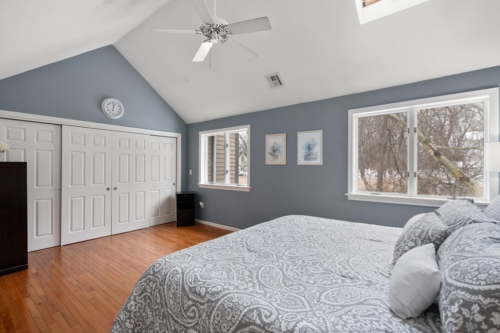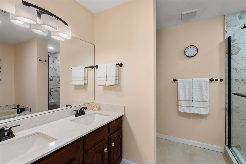 Welcome to this delightful townhouse in sought-after Walnut Hill Estates perfectly perched with standout curb appeal! Step inside to a spacious kitchen featuring cherry cabinetry, granite countertops, built-in wine storage, stainless steel appliances, & a dining nook. The open-concept living & dining area offers hardwood floors, a corner fireplace, a skylight, a slider leading to the rear deck & a walkway to the inground pool both ideal for summer relaxation & entertaining. Upstairs, you’ll find two generously sized bedrooms with cathedral ceilings, paddle fans, hardwood flooring, and wall-to-wall closets. Both bedrooms enjoy their own recently renewed full baths. The second-floor laundry adds everyday convenience. The lower-level bonus room, complete with a fireplace & vinyl plank flooring, is perfect for a home office, or family room. It connects to the one-car garage which features an epoxy-coated floor for a polished look. Fantastic commuter location just minutes from major routes!