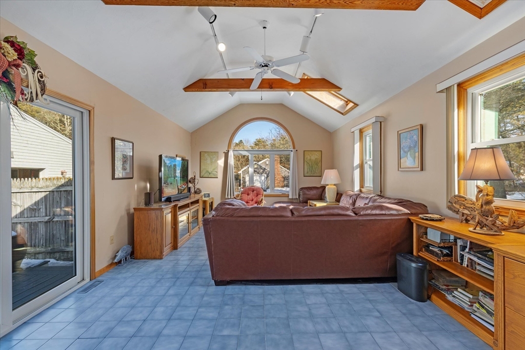 Come home to this meticulously maintained estate at the end of a long, flower-lined drive. The property features a 3-car detached garage w/dedicated bay for your ''favorite toy,'' plus tool, potting & pool sheds for all your creative outlets. Fenced-in backyard oasis epitomizes relaxation, featuring a built-in heated saltwater pool, hot tub, outdoor shower, large composite deck & automatic awning. Enjoy an irrigated lawn w/flowering trees or the wooded area offering Zen-like paths, seating areas & raised gardens. Inside, the open, single-level layout connects a fireplaced LR to the dining area & the kitchen with cherry cabinetry, solid-surface (Corian) counters, & SS apps. Slider off the DR leads to a sunlit great room w/cathedral ceiling, skylights & tile flooring. Hall leads to a primary suite w/priv full bath, 2 guest beds & main bath featuring a skylight & custom tile shower w/glass enclosure. If you're a land lover, gardener, entertainer, or peace-seeker.. this is the one for you!