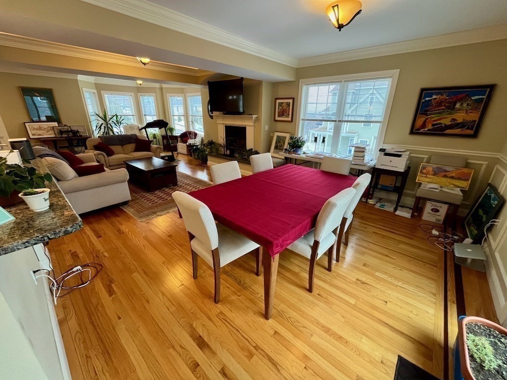 Gorgeous three level townhouse with attention to detail at every turn. Three bedrooms with large bonus room on third floor which has its own full bath, closet and washer/dryer hookups. Primary suite comprised of spacious room with bay windows, tray ceiling, walk-in closet and tiled shower in bathroom. Modern features throughout unit include hardwood flooring with custom inlay, granite countertops, crown molding and stainless steel appliances. Contemporary, open-style layout on first floor with gas fireplace in living/dining area and an additional half bath. Central A/C with two systems and plenty of storage throughout unit. Conveniently located with close access to Watertown Square, parks, shops and restaurants.