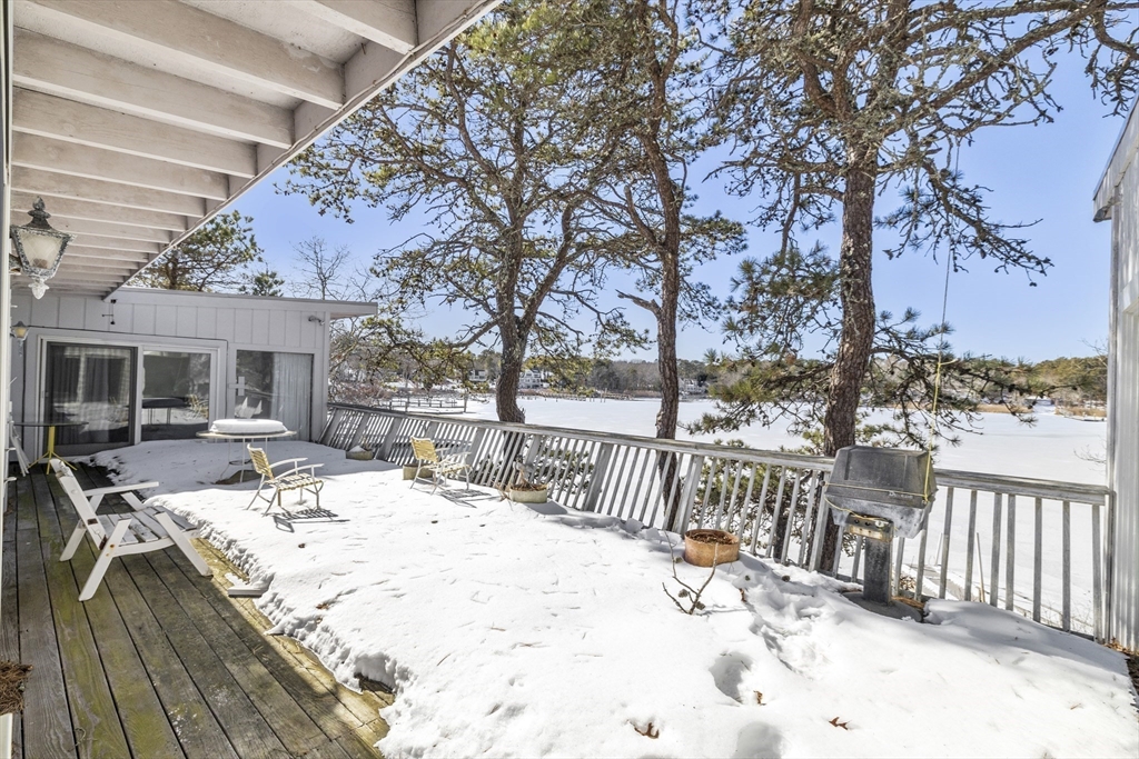 Welcome to your waterfront retreat in the highly sought-after Summersea neighborhood of New Seabury, located in the charming coastal town of Mashpee on beautiful Cape Cod. Perfectly positioned on a quiet dead-end street in a peaceful woodland setting, this exceptional home overlooks scenic Ockway Bay and offers stunning water views from nearly every room. Floor-to-ceiling windows throughout flood the open floor plan with natural light, seamlessly blending indoor and outdoor living while showcasing the breathtaking surroundings. Step outside to an expansive rear deck—ideal for entertaining, relaxing, or soaking in the tranquil bay views. Your private dock provides direct water access, making this a dream property for boating enthusiasts and nature lovers. The versatile walkout lower level features a family room, three bedrooms, a full bath, and abundant storage space—perfect for large family and guests. New Seabury offers it's residents amenities, association benefits and luxury living.