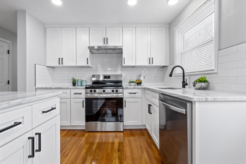 Beautifully updated home in a desirable Marlborough area, competitively priced for today’s market. The stunning kitchen features new quartz countertops, Shaker cabinetry with crown molding, subway tile backsplash, and stainless steel appliances. New double-hung windows, updated fixtures and gleaming hardwood floors run throughout. Two baths offer new tile flooring and subway tile surrounds and new vanities including a brand new primary bath. Fresh interior paint throughout, including the basement with great workspace or expansion potential. New water heater, new exterior siding, and new Trex steps at the rear entry. Situated on an easy-to-maintain corner lot. Move-in ready. All seller made updates have been fully permitted. Seller offering a complimentary 1-year home warranty for buyers who close within 30 days of offer acceptance.