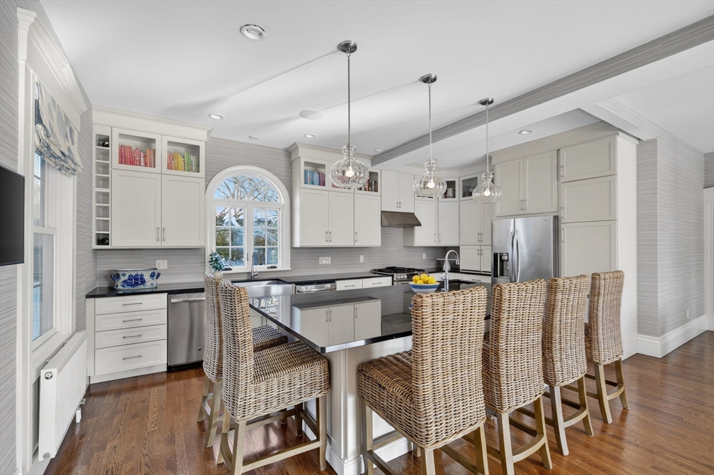 Sophisticated, timeless, and beyond compare, 10 Franklin Street in the heart of the village effortlessly blends warmth, elegance, and style to create a truly distinctive home in Padanaram. Built in 1851 by Philip Manchester and lovingly restored for today’s modern lifestyle. The first floor has an open kitchen, dining and seating areas, with oversize sliders opening to deck/pool. Two spacious living rooms create inviting spaces for entertaining. His and hers offices, a mudroom, and powder room complete the first floor. The second floor has a fabulous primary suite with deck overlooking the pool. Down the hall … a pair bedrooms with a Jack and Jill bath, a cozy seating alcove, and two additional bedrooms, which share a full bath. Third floor offers a sitting area and additional guest room. Pool house and mature landscaping provide the utmost privacy for the heated Gunite pool and spa with bluestone patio. A heated two car garage and gym complete this extraordinary property.